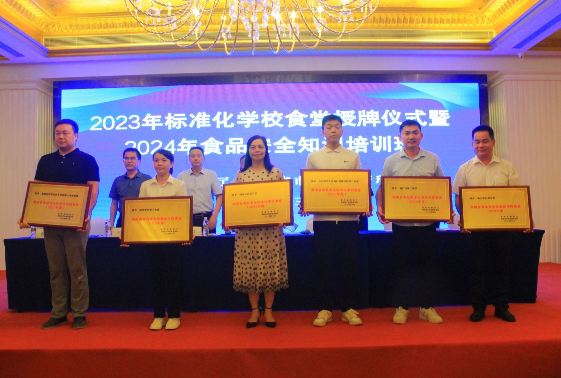 近日,省教育厅、省市场监督管理局在三亚举办2023年标准化学校食堂授牌仪式暨2024年食品安全知识培训班。beat365英国官网网站第一学生食堂被授予“海南省食品安全标准化学校食堂(2023年度)”。