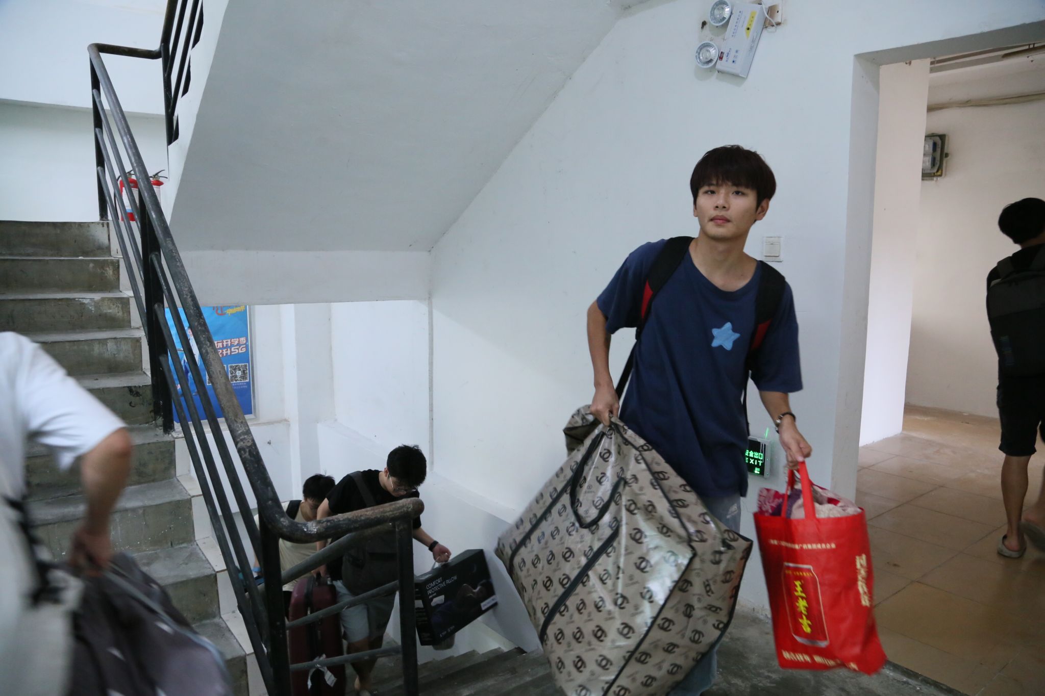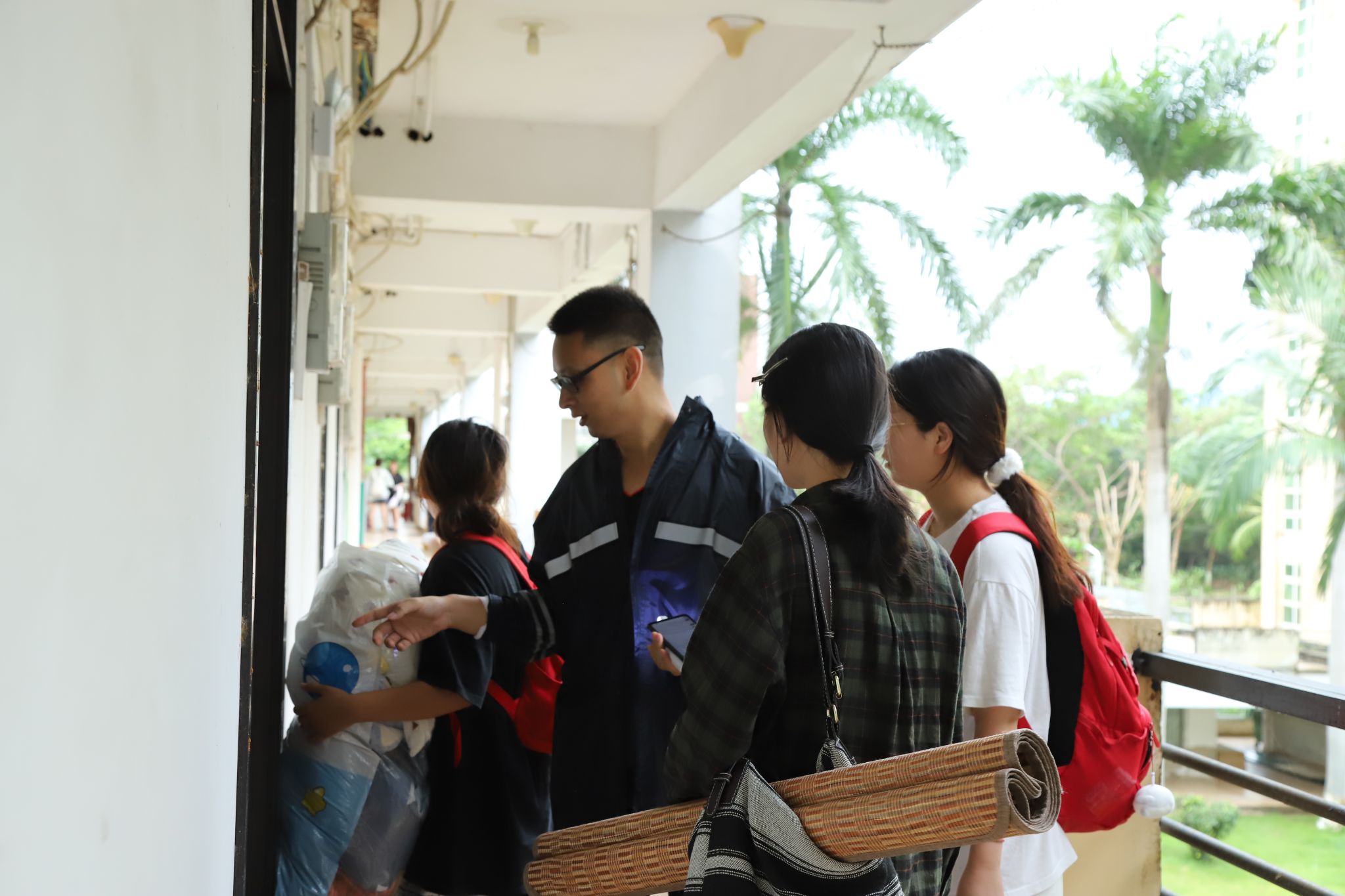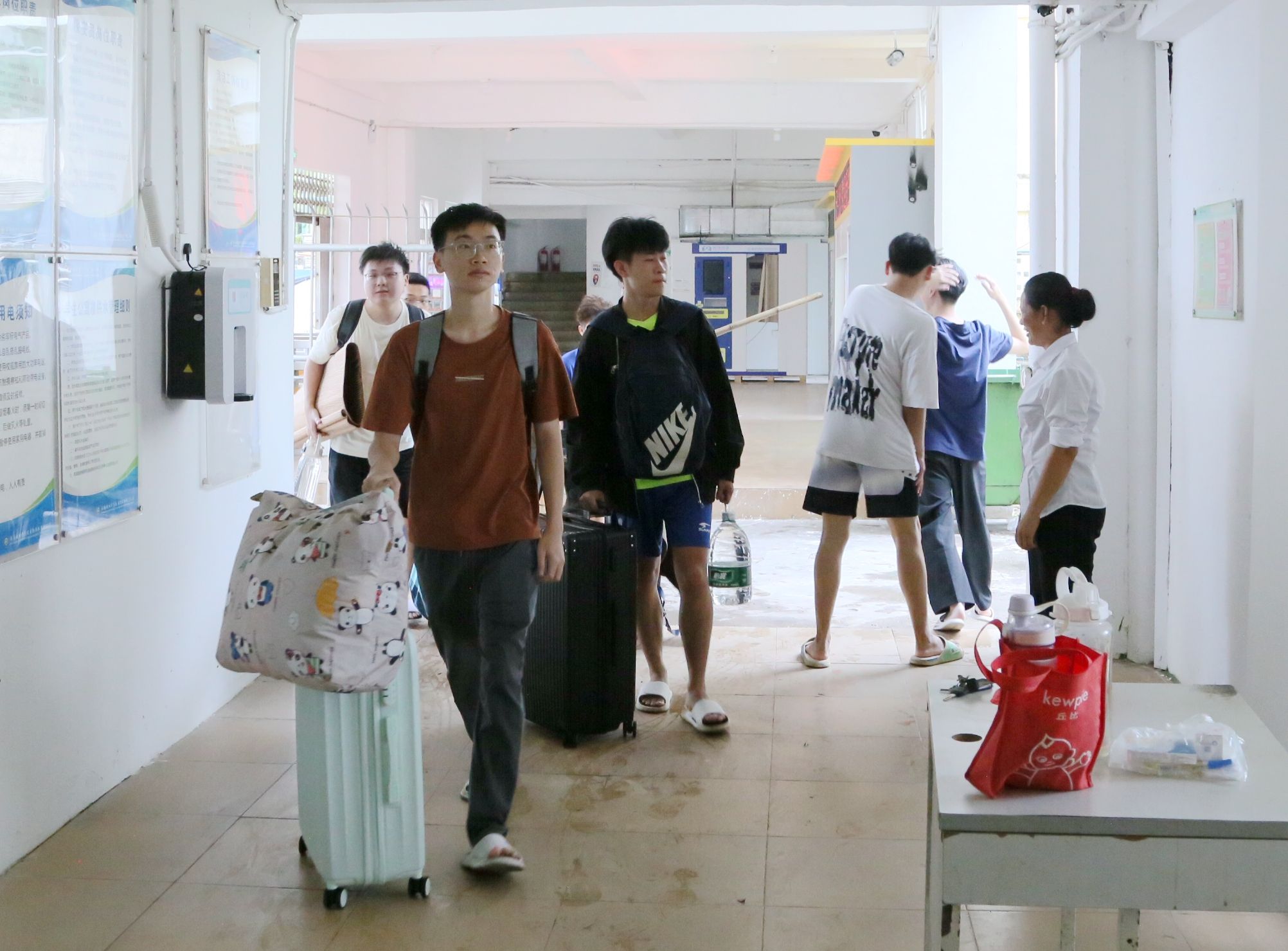 “请大家简单收拾食品、贵重物品、饮用水和被子枕头,搬到指定宿舍”“老师们都在宿舍楼,有事第一时间找我们”“大家都做了很多准备,不用太过于紧张”……根据学校防风防汛工作部署,居住在高楼层的学生需要暂时转移至低楼层。全体学工人员提前清点学生人数,摸清宿舍底数,耐心向同学们进行解释和引导。在辅导员、学生干部的有序组织下,需要转移的同学们积极配合,目前已全部安全入住。