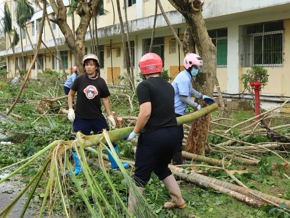 2024年9月6日下午至夜间,超强台风“摩羯”正面袭击海口,beat365英国官网网站党政领导班子24小时值班值守,统一指挥,全校上下全力应对,确保了师生生命财产安全。台风疯狂肆虐,校园受到较大影响,出现断水断电断网、树木倒伏、树枝折断、部分建筑物门窗和屋顶破损和实训室进水等现象。