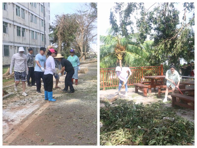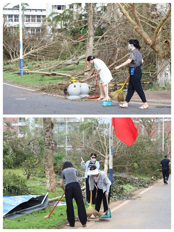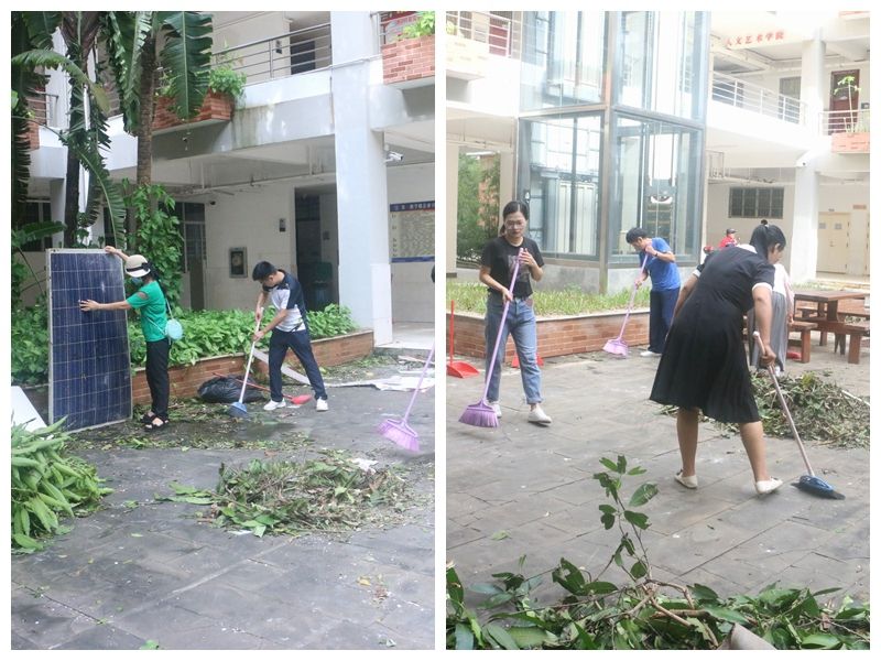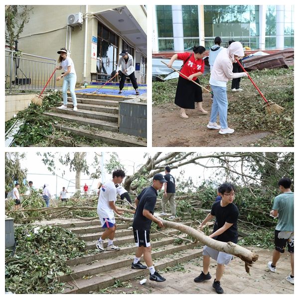 超强台风“摩羯”过境后,在通讯网络不畅的情况下,beat365英国官网网站广泛组织动员党员干部和学生志愿者,组成“党员先锋队”“青年冲锋队”,第一时间投入灾后恢复重建工作,学校已基本恢复生活教学秩序。今天,全体师生员工以劳动教育课的形式来上“灾后第一课”,有序参与到校园灾后恢复重建工作中来,用爱与责任共同守护家园。