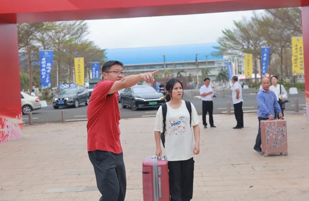 海经贸志愿者们早已在各交通接站点暖心接站,期待同学们的到来。在校园的每一个角落,都有学生志愿者忙碌的身影,他们接过新生的行李,穿梭在校道上,是新同学初入校园的引路人,是海经贸温暖的传递者。“你们家里安好吧”“台风过后,我们上了劳动课和开主题班会,大家齐心协力清理校园,我们是团结的集体”“已经恢复正常的教学秩序了,你在这里可以安心学习”……学长学姐与新生及家长边走边聊,讲“摩羯”过境后学校的受灾情况,讲断电断水断网期间老师和同学们如何守望相助、共渡难关,开展校园灾后恢复重建工作……在校园里上起了“行走的思政课”。