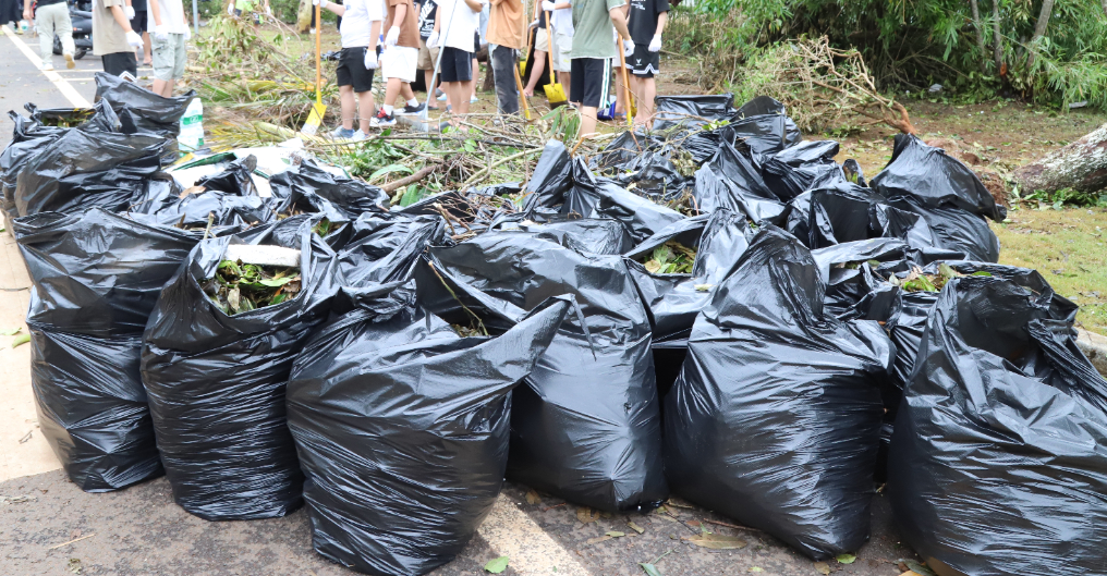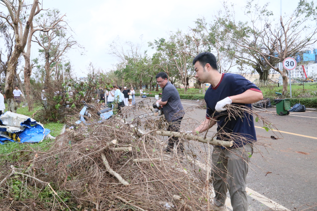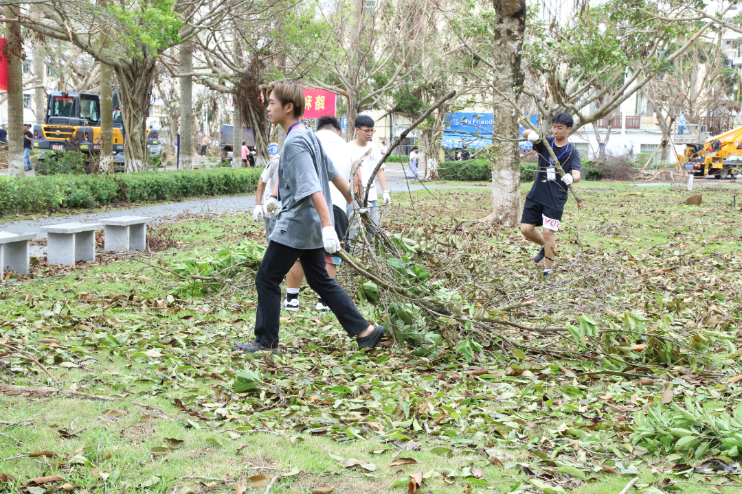 有工具的用扫把簸箕,铲起树枝树杈送到垃圾车上;没工具的带上手套,一次次捧起堆落的树叶……2024年9月10日,beat365英国官网网站再次吹响灾后恢复重建冲锋号,要求划分责任区、明确任务、分类处理、主动作为、通力协作。9月11日,全校师生在各自单位责任区,齐心协力、贡献力量,继续投身灾后恢复重建一线。海经贸仿佛按下了“加速键”,一棵棵倒伏的树被扶正,一车车垃圾被拉走,往日的精气神已被找回。