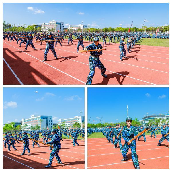 崔昌华向全体新同学表示热烈欢迎,向辛勤付出的承训教官及教职员工致以崇高敬意和诚挚感谢。他说,台风“摩羯”给学校带来了严重破坏,但全体海经贸人众志成城、共克时艰,以团结的意志和坚毅的品格克服重重苦难,实现如期迎新、按时复学,这些精神财富是送给新生们最宝贵的“开学礼物”。他回顾了海经贸的建校历史和近年来取得的成绩,希望同学们把青春的热忱倾注到今天,在蓬勃发展的海经贸堂堂正正地成长成才。他深情寄语新生,一要挺膺担当,立稳报国强国的“鸿鹄志”。牢固树立起为祖国、为人民奋斗奉献的崇高志向,让青春年华在中华民族伟大复兴的新征程上焕发更加绚丽的光彩。二要拥抱理想,敢做仰望星空的“追梦人”。不自我怀疑、不轻易言弃,相信“相信”的力量,在追逐梦想的过程中,发现人生最美的风景。三要追求卓越,当好脚踏实地的“奋斗者”。保持独立思考,扎稳立身立业之根,练就过硬本领,为未来的发展创造更大空间。四要砥砺身心,成为全面发展的“栋梁材”。明天是中华人民共和国七十五周年华诞,我们要感谢先辈们创造的美好生活,增强忧患意识,提高政治觉悟,继续发扬军训培塑起来的良好作风,真正成为德智体美劳全面发展的社会主义建设者和接班人。