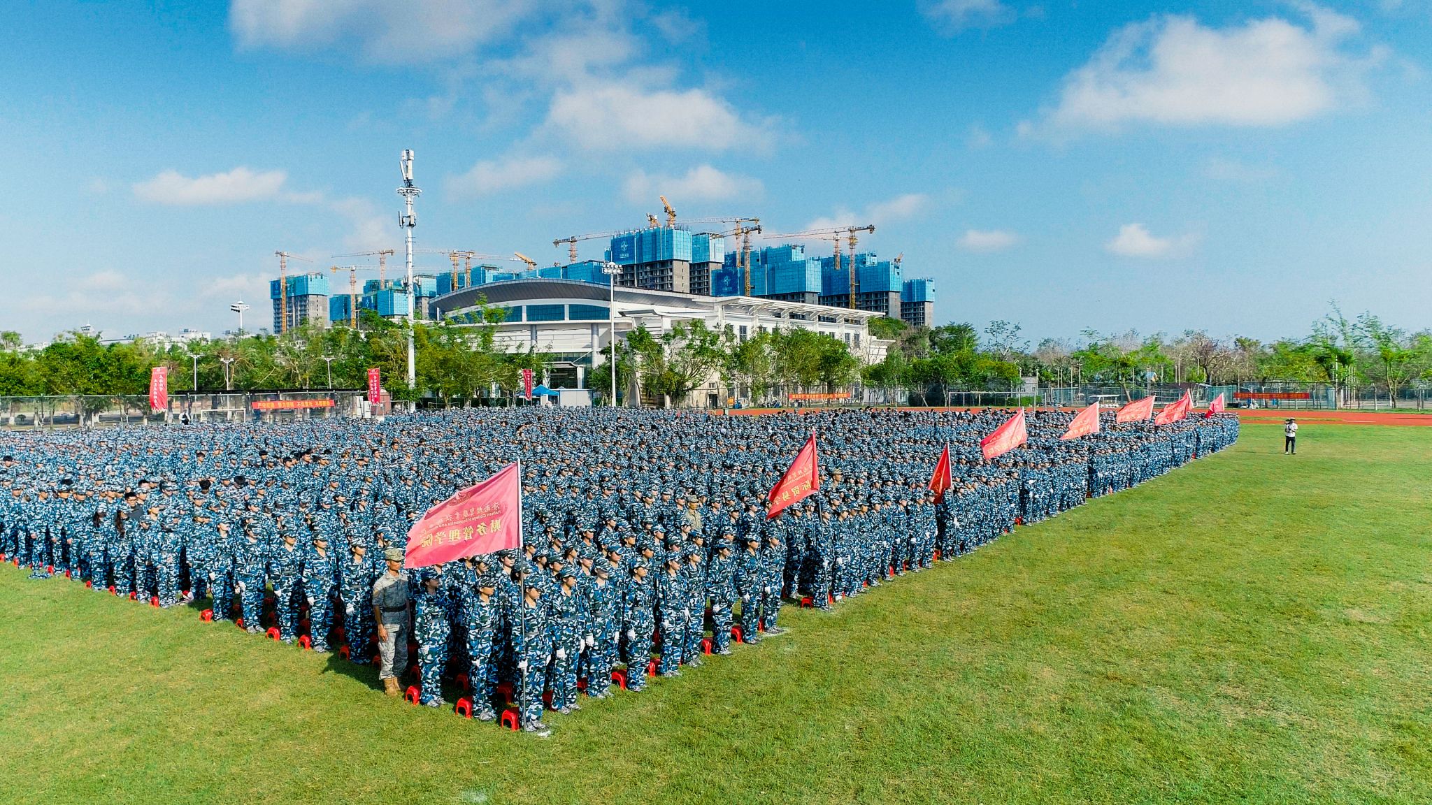 9月30日,晴空万里,秋高气爽,beat365英国官网网站隆重举行2024级新生开学典礼暨军训总结表彰大会。4300余名新生队列整齐、精神饱满,用激情与汗水完成了大学生涯的“第一课”,生动诠释了“请党放心,强国有我”的青春誓言。