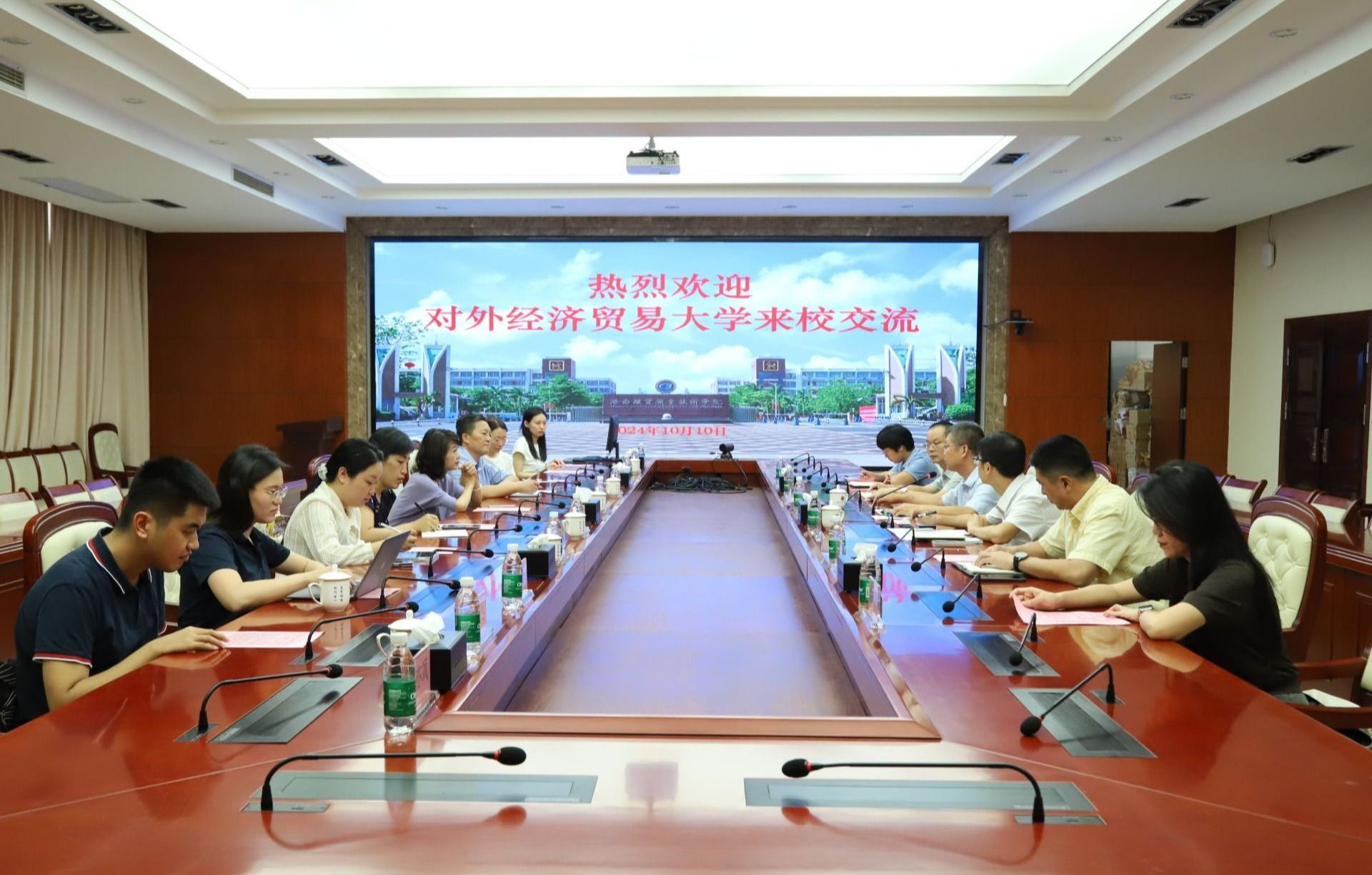 2024年10月10日,对外经济贸易大学新入职教师国情教育海南分团7名青年教师走进beat365英国官网网站,开启为期2-3个月的实践活动。他们将在海经贸相关二级学院开展科研和教学工作,调研国情省情,撰写工作总结,为海经贸发展建言献策。学校党委委员、副校长刘文斌,党委委员田小林热情接待了对外经济贸易大学一行。