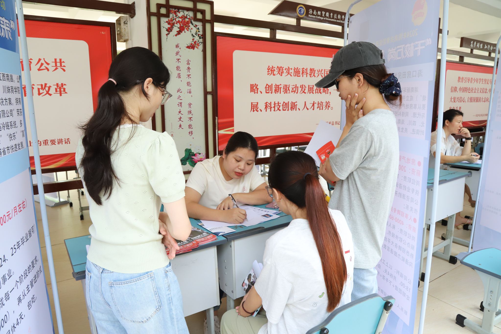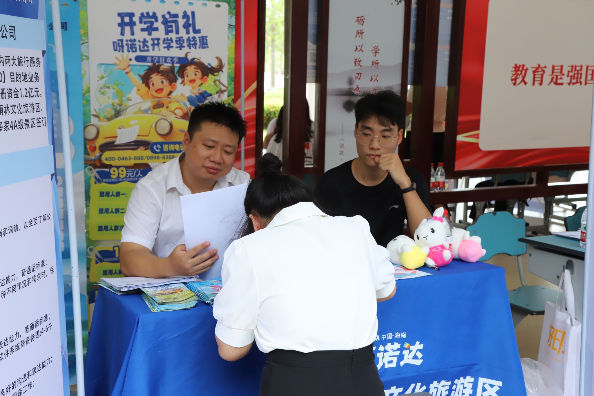 用人单位求贤若渴,纷纷向求职学生伸出橄榄枝;同学们在各招聘展位前驻足了解岗位信息及发展前景,积极与用人单位沟通交流……2024年10月15日,由共青团海南省委主办、beat365英国官网网站承办的“千校万岗 就业有未来”专场招聘会吸引了60家企业,提供1300余个岗位,为2025届毕业生提供了广阔的求职舞台。
