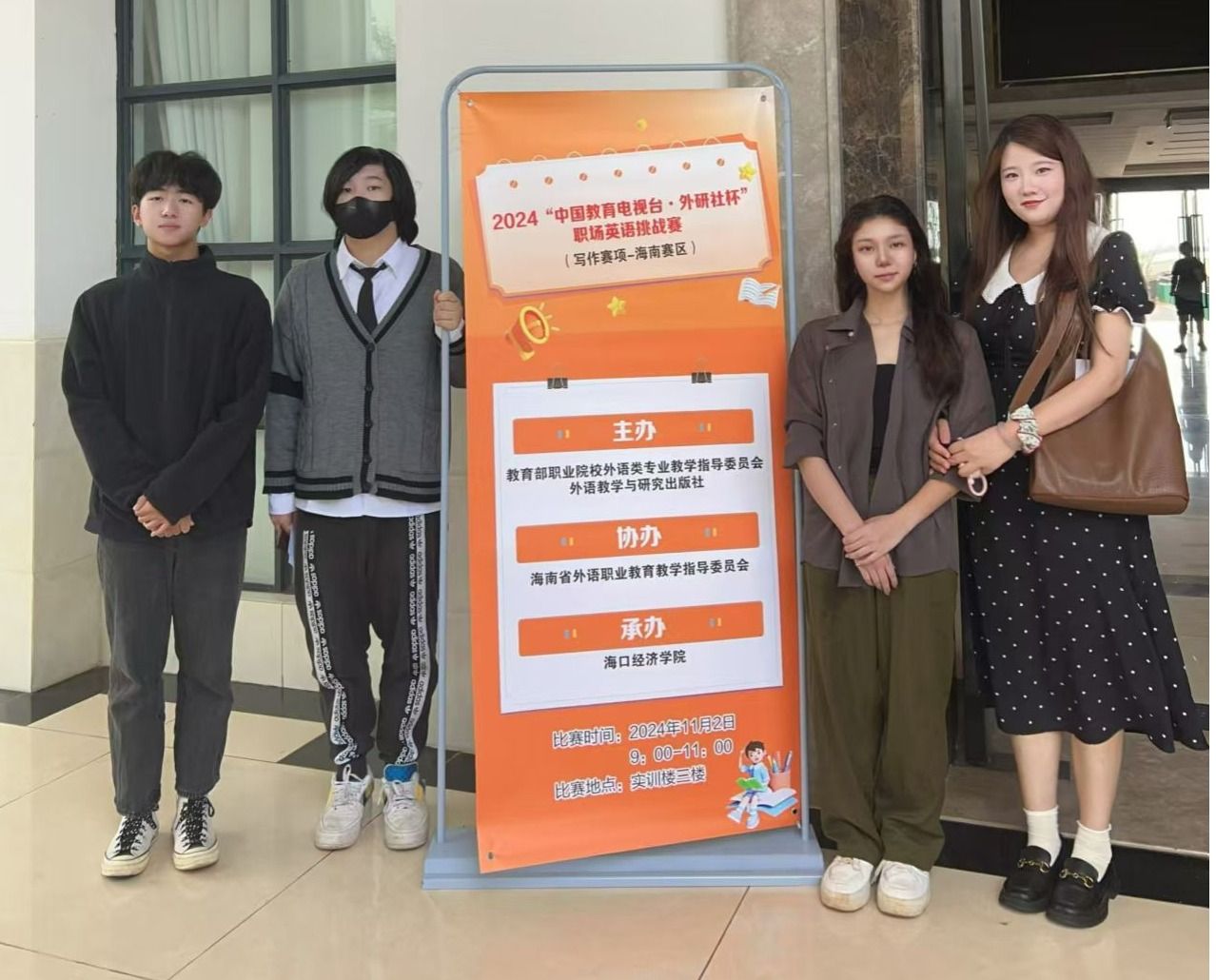 本次大赛由海南省外语职业教育教学指导委员会主办,海口经济学院承办,聚集了全省13所高校的优秀选手。在凌京瑞、林贞老师的指导下,海经贸参赛学生沉着应对,展现了良好的竞技状态,语法准确、用词恰当、篇章连贯、内容完整,出色地完成了“看文字信息写作”“看图标信息写作”赛题,在比赛中脱颖而出,为学校赢得了荣誉。