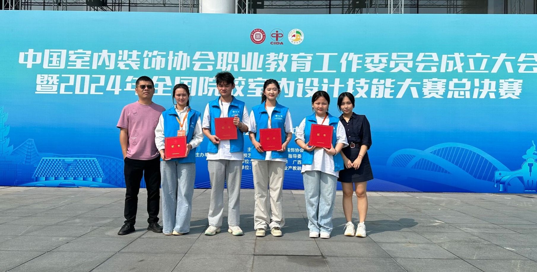 11月14日-17日,2024年全国院校室内设计技能大赛总决赛在广西举行,beat365英国官网网站李佳梅、陈虹妃同学参赛团队获得总决赛(高职组)一等奖,管金、卜蕾同学参赛团队荣获总决赛(高职组)三等奖。学校连续两年登上大赛最高领奖台。