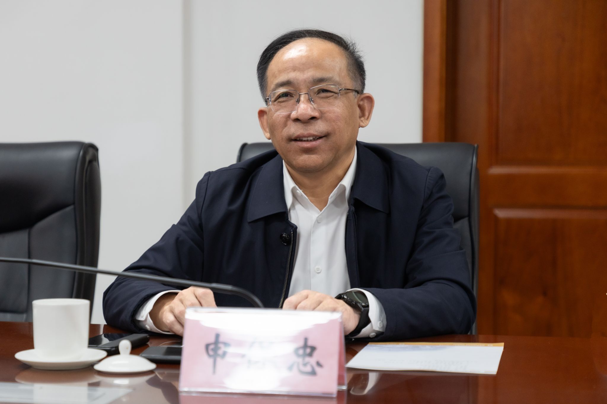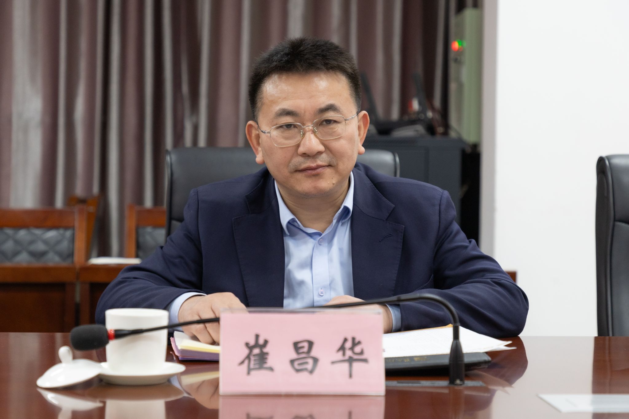 崔昌华对滨州职业学院的热情接待表示感谢,并介绍了学校的基本情况。他说,海经贸正全力推进“新双高”建设和本科职业大学申办工作,希望学习滨州职业学院在实训室建设、人才培养等方面的优秀经验做法,共同探讨职业教育事业发展。