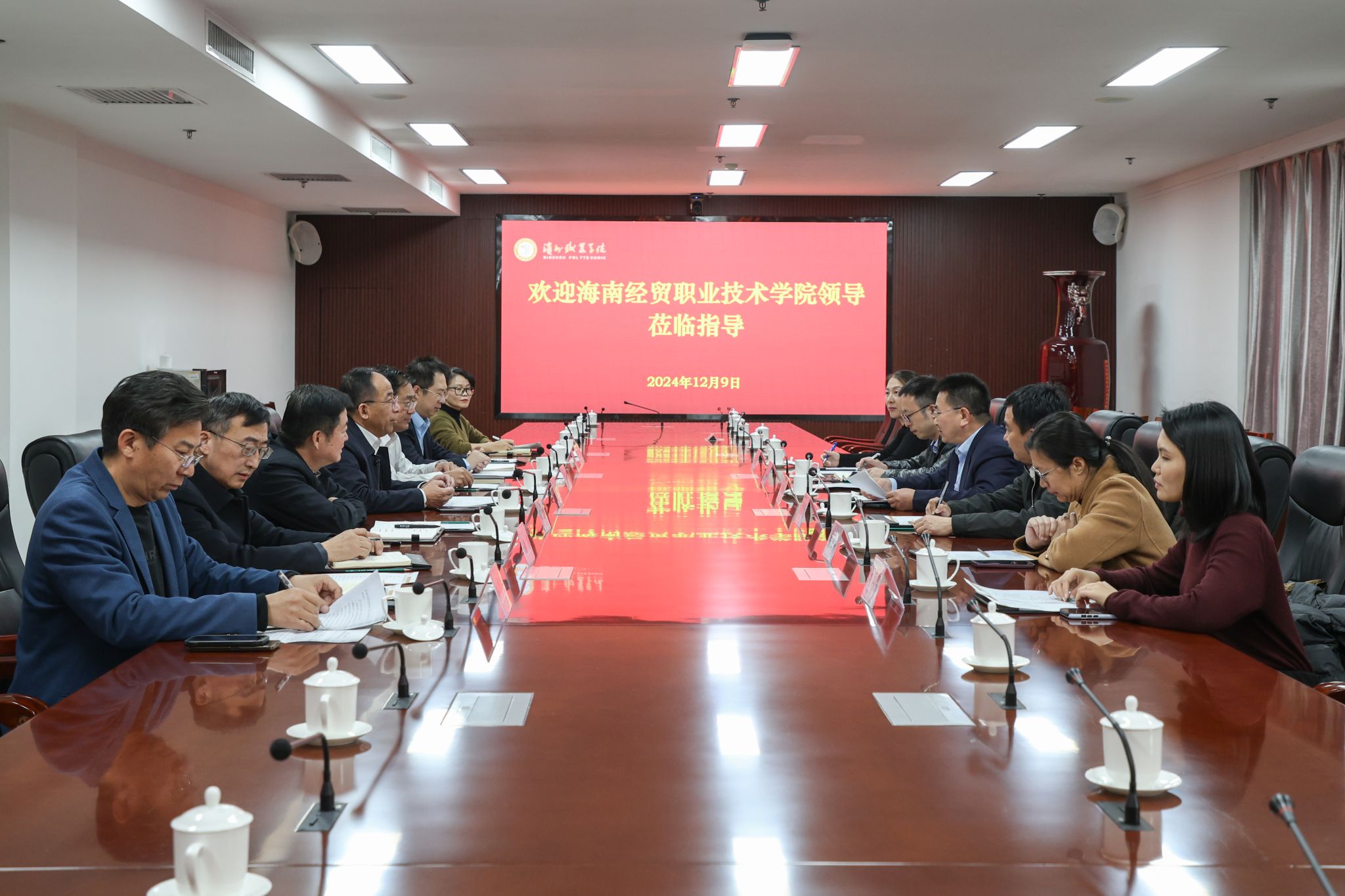 2024年12月9日,beat365英国官网网站党委副书记、校长崔昌华一行6人前往滨州职业学院,与滨州职业学院党委副书记、校长申保忠就人才培养、实训室建设等方面深入交流。