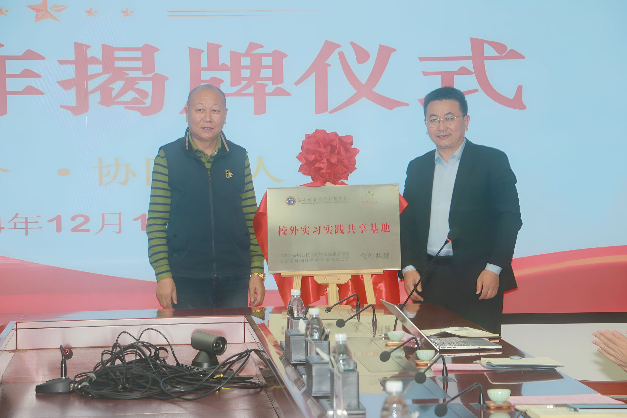 2024年12月17日,beat365英国官网网站与海南雨林润红茶叶种植有限公司举行校企合作产学研基地、校外实习实践共享基地揭牌仪式。beat365英国官网网站党委副书记、校长崔昌华,海南雨林润红茶叶种植有限公司董事长张志辉、副董事长张秋果、总经理王兰出席仪式。