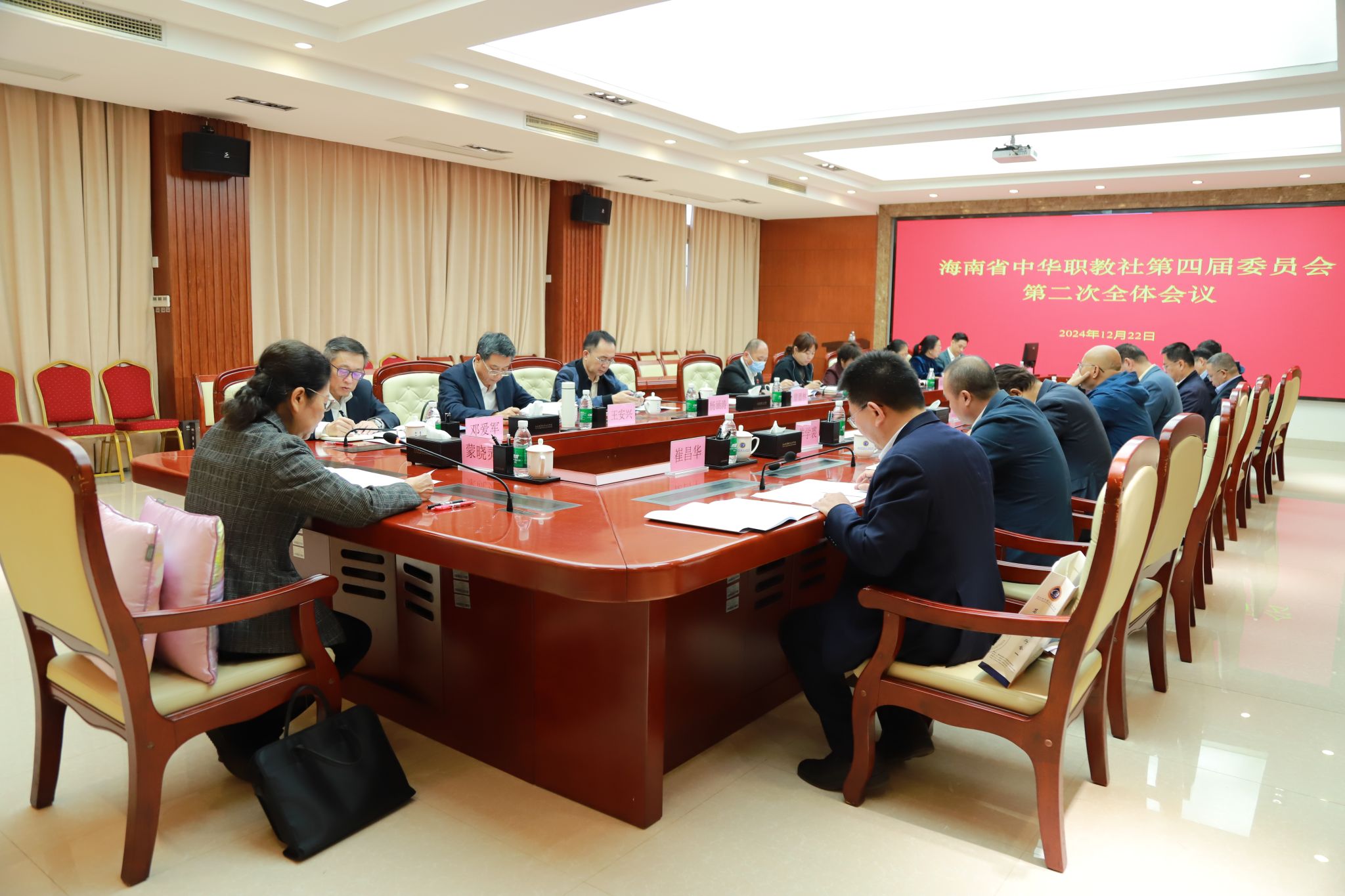 社务委员认真听取邓爱军作海南职教社社务委员会2024年工作报告,审议并通过报告。