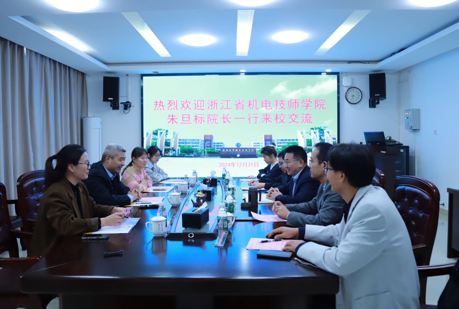 2024年12月31日,浙江省机电技师学院院长朱旦标一行4人来到beat365英国官网网站,就世界技能大赛竞赛参赛组织工作等方面进行交流座谈。学校党委副书记、校长崔昌华热情接待了朱旦标一行。