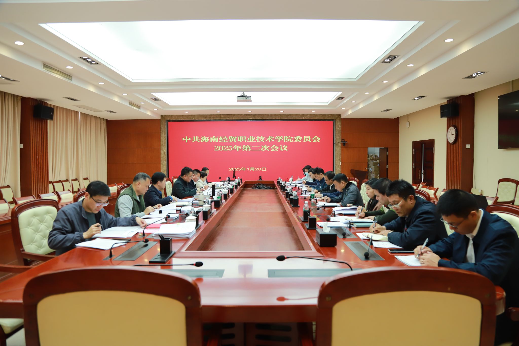 会议传达学习省委书记、省人大常委会主任冯飞在海南省七届人大四次会议闭幕式上的讲话精神,传达学习省长刘小明代表省政府向大会作的2025年海南省政府工作报告。会议指出,2025年海南省两会是在做好“十四五”规划收官、奋力推进海南自由贸易港封关运作、扩大开放关键时期召开的一次重要会议。要切实提高政治站位,把学习贯彻省两会精神与学习贯彻习近平总书记在听取海南省委和省政府工作汇报时的重要讲话精神、全国教育大会、全省教育大会精神结合起来,落实好中央和省委各项决策部署,与学校“双高”建设和本科职业大学申办结合起来,切实把海南省两会精神落到实处,推动学校各项事业高质量发展。