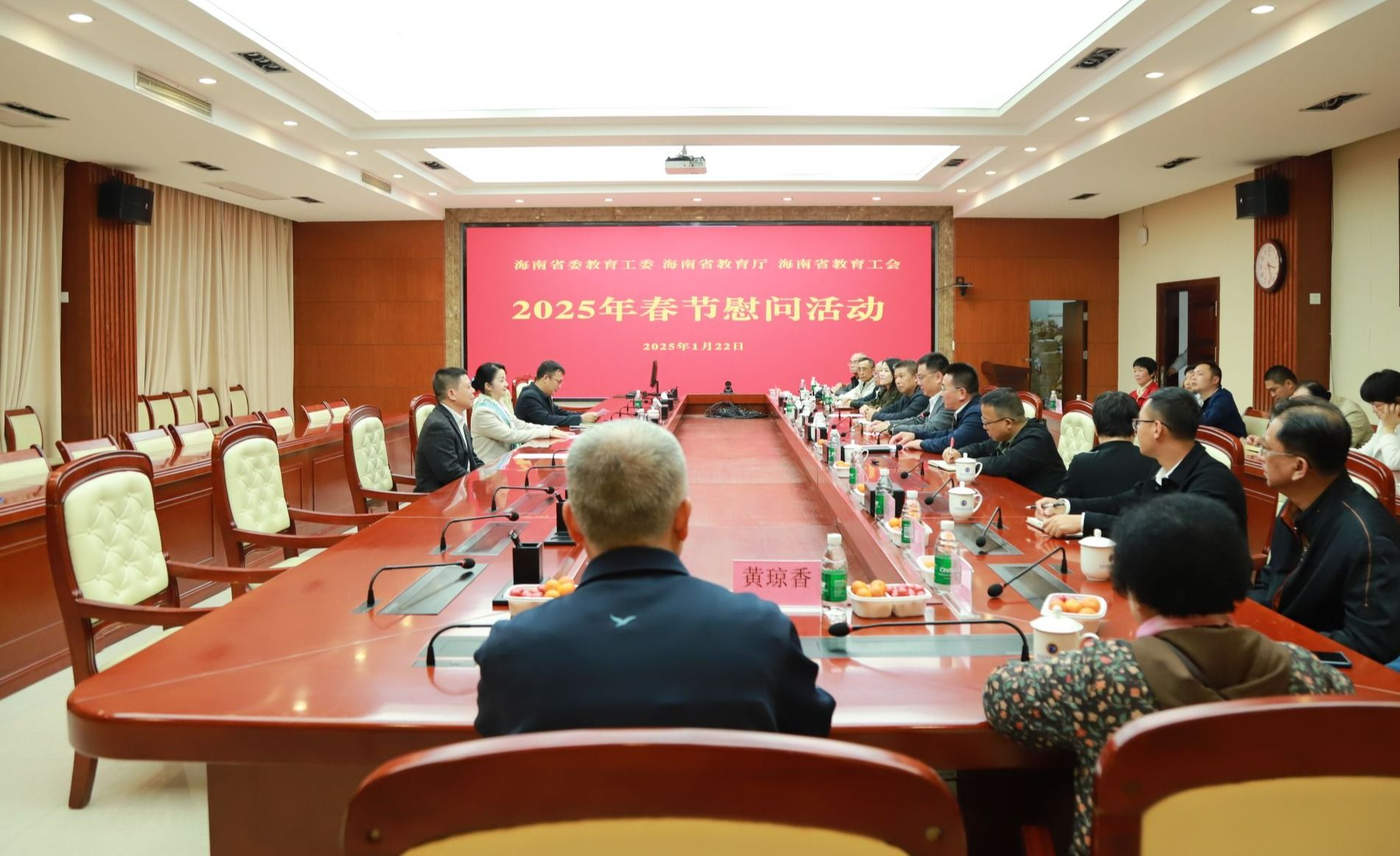 2025年1月22日,海南省人民政府教育总督学李渝凤、省教育厅教育督导局局长徐光锋、省教育厅高教处一级调研员刘世琼一行代表省委教育工委、省教育厅、省教育工会,看望慰问beat365英国官网网站基层党员和教职工。学校党委书记王华,党委副书记、校长崔昌华陪同慰问。