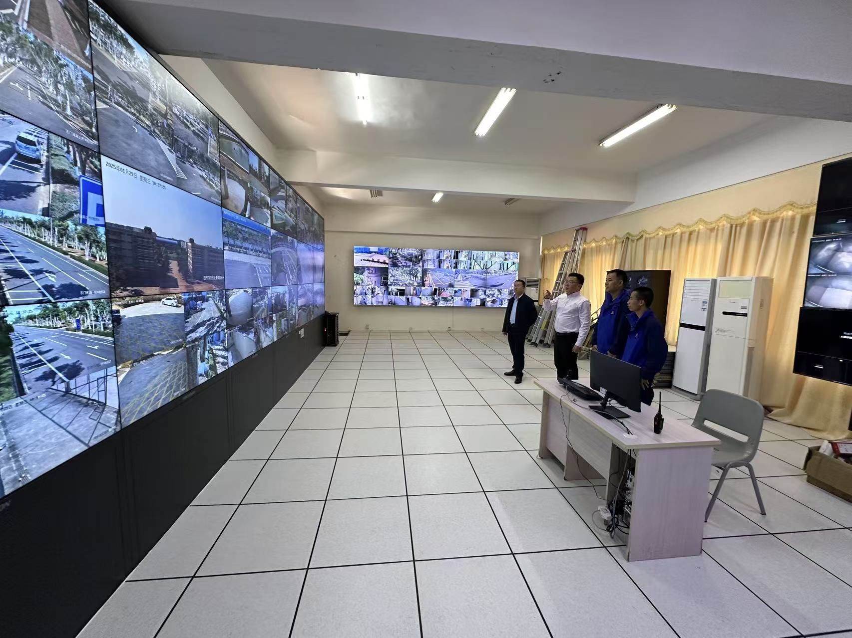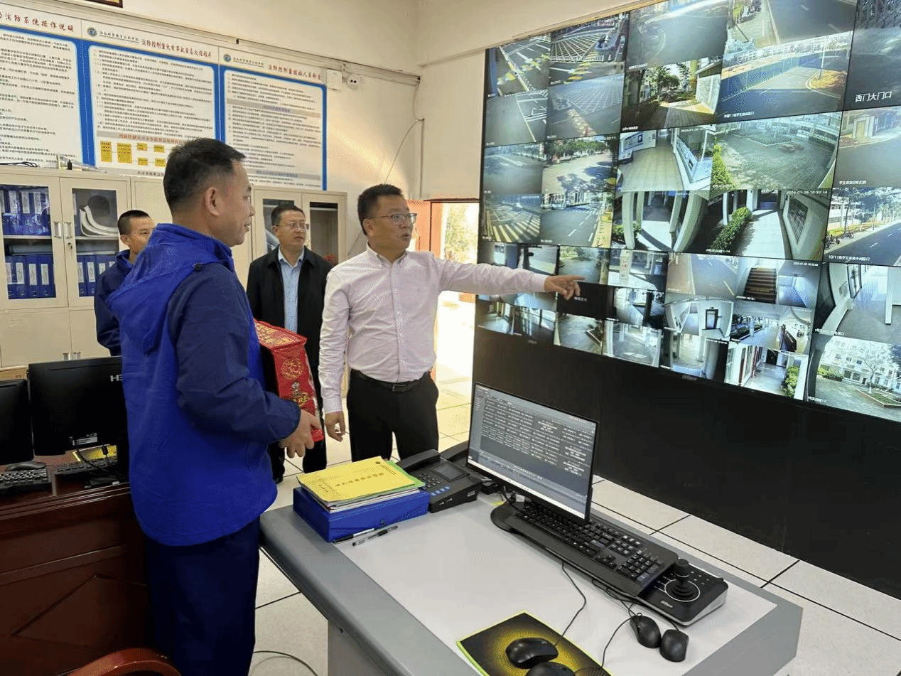王华一行先后来到学校南门门岗、学术交流中心值班室、监控室,详细了解校园安全稳定及各项工作情况,与值班人员亲切交谈,对他们舍小家、顾大家的奉献精神表示衷心感谢。王华再次强调了校园安全的重要性,指出要时刻绷紧安全这根弦,进一步压紧压实责任,加强风险排查,落实应急举措,抓好各项安全保障工作,以“时时放心不下”的责任感站好岗、值好班、守好门。他说,学校的发展离不开每一位教职工的辛勤付出,希望大家在新的一年里继续发扬敬业精神,齐心协力,共同推进学校各项工作迈上新的台阶。王华亲切叮嘱大家,近期气温变化较大,在坚守岗位的同时,一定注意防寒保暖,合理安排作息,并祝福大家新春快乐、身体健康、阖家幸福安康。