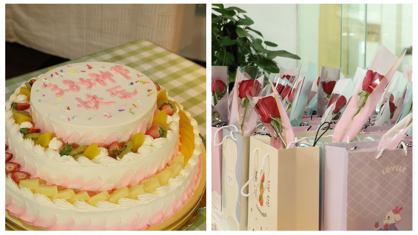 红色气球氛围温馨、可口美食琳琅满目……教职工食堂准备了特色菜品、水果拼盘、美味茶点,每一样都承载着学校对全体女同胞的深情祝福。“祝全体女同胞节日快乐!希望大家工作顺利、家庭美满、幸福安康!”学校党委书记王华,党委委员、副校长陈修焕和广大女教职工欢聚一堂,为大家切蛋糕、送鲜花和礼品。大家的脸上洋溢着的灿烂笑容,为节日增添了一份特别的温暖与甜蜜。