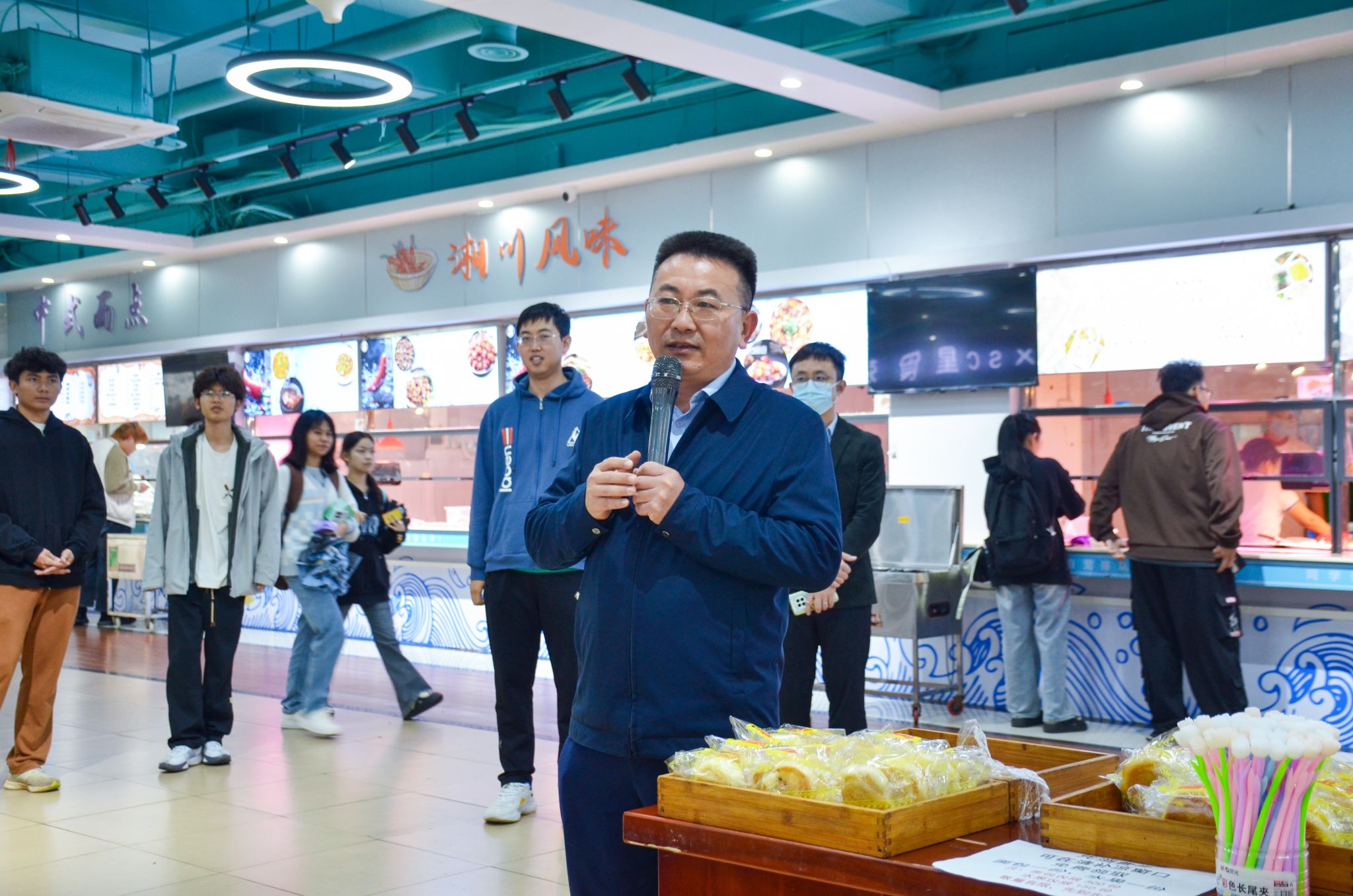 崔昌华校长在学生食堂为同学们送上节日祝福