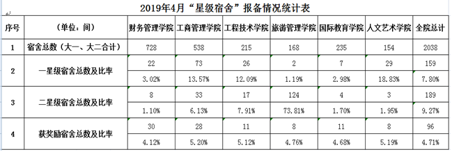 2019 年4月”星级宿舍“评选情况通报