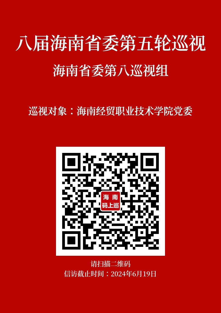 根据八届省委第五轮巡视工作部署,省委第八巡视组负责对beat365英国官网网站党委开展常规巡视。巡视时间:2024年3月26日至6月24日;省委巡视组联系电话:(0898)65829328,接听电话时间为工作日上午8时至12时、下午15时至18时;邮政信箱:海南省海口市A150号邮政信箱,邮政编码:571199;联系信箱地址:海口市美兰区桂林洋高校区勤学路beat365英国官网网站行政办公楼门口北侧。省委巡视组受理信访时间截止:2024年6月19日。