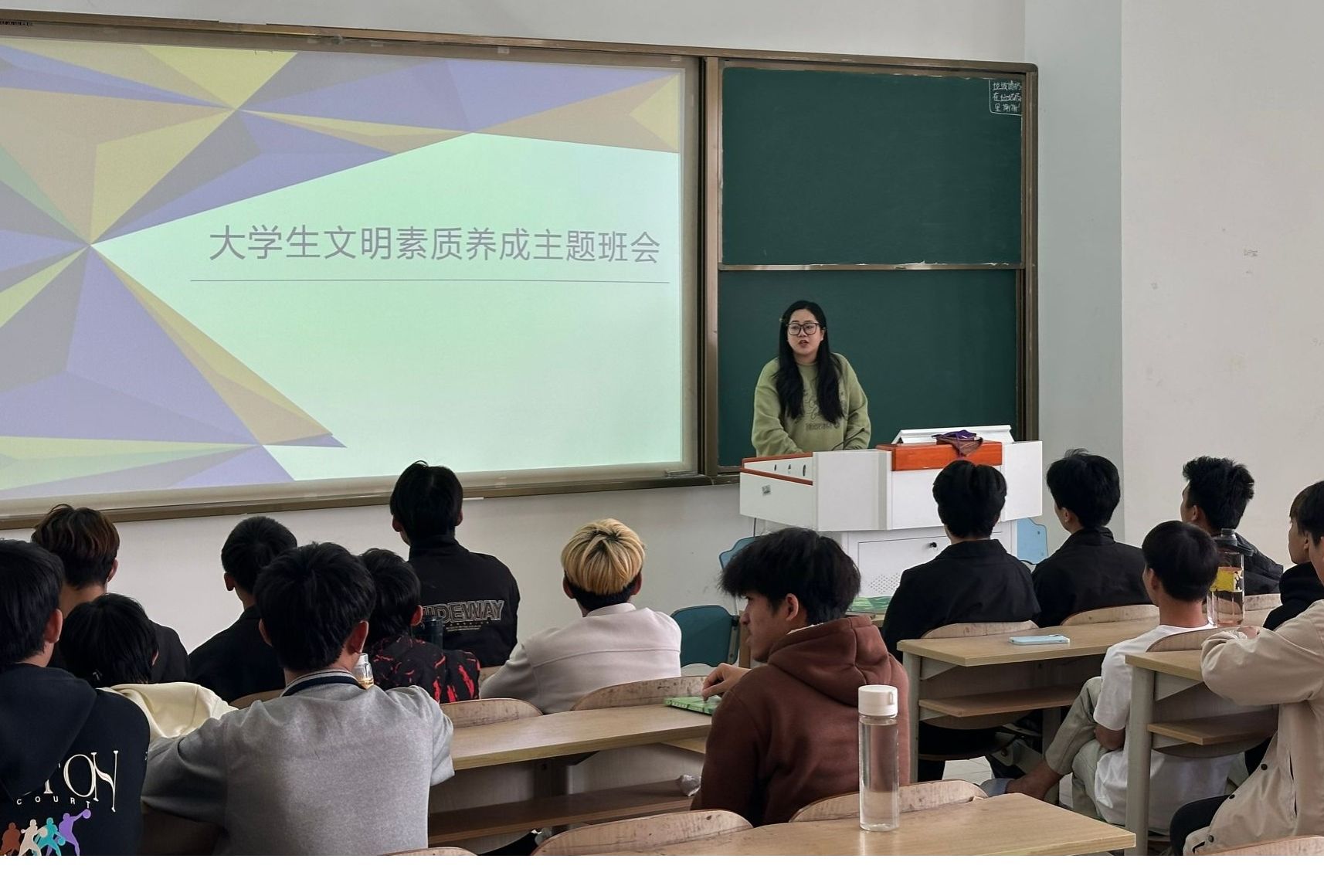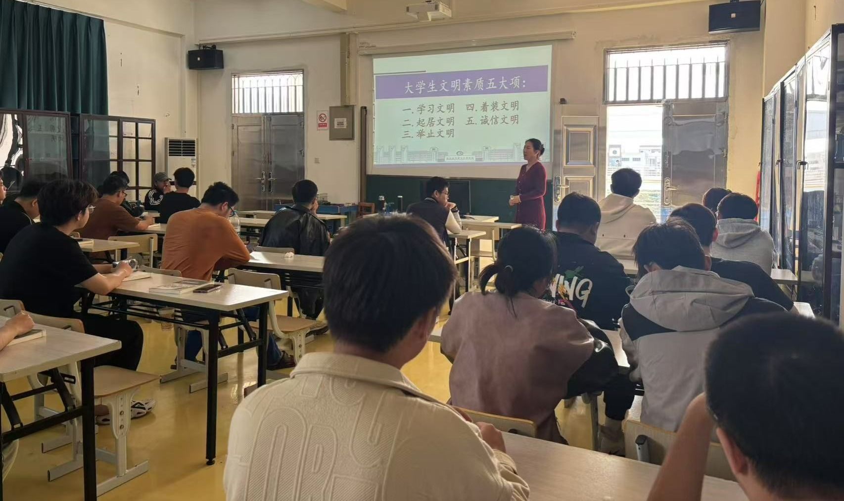 在班会上,老师们围绕学生文明素质养成,通过“教、学、管”三方面,分阶段、分层次、分重点,向过度染发、校园吸烟、沉迷网游、行为不雅、资源浪费、穿着不当等不文明行为说“不”,引导学生从自身出发,注重个人形象,摒弃生活陋习,遵守校规校纪,学习文明礼仪,营造良好学风、院风,助力构建文明和谐校园。