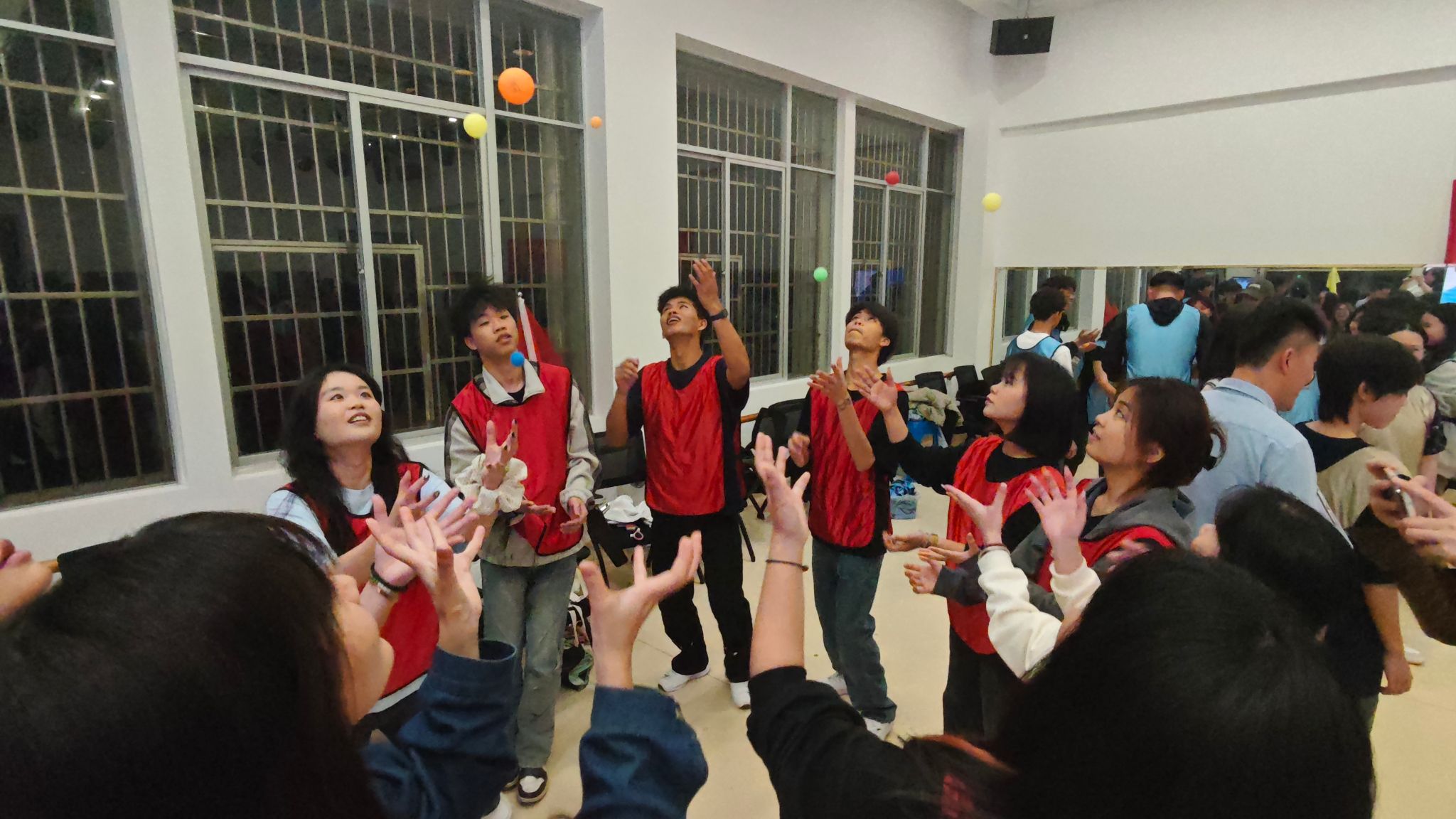 活动在一片欢声笑语中拉开帷幕,“大风吹”与“马兰开花”两个热身游戏迅速打破了同学们之间的陌生与隔阂。成员们群策群力,携手攻克任务卡上的各项挑战,并精心策划展示环节,充分展现了同学们的团队协作能力与创新思维。在“移形换位”游戏中,小组成员围成一圈,以乒乓球为媒介,上演了一场空中接力赛。大家谨慎地控制着球的轨迹与力度,游戏难度也随之升级,现场气氛紧张而热烈。伴随着同学们的欢声笑语,合作的愉悦与成就感在这一刻得到了淋漓尽致的展现。“无敌风火轮”“动力绳圈”挑战环节更是将活动推向了高潮。