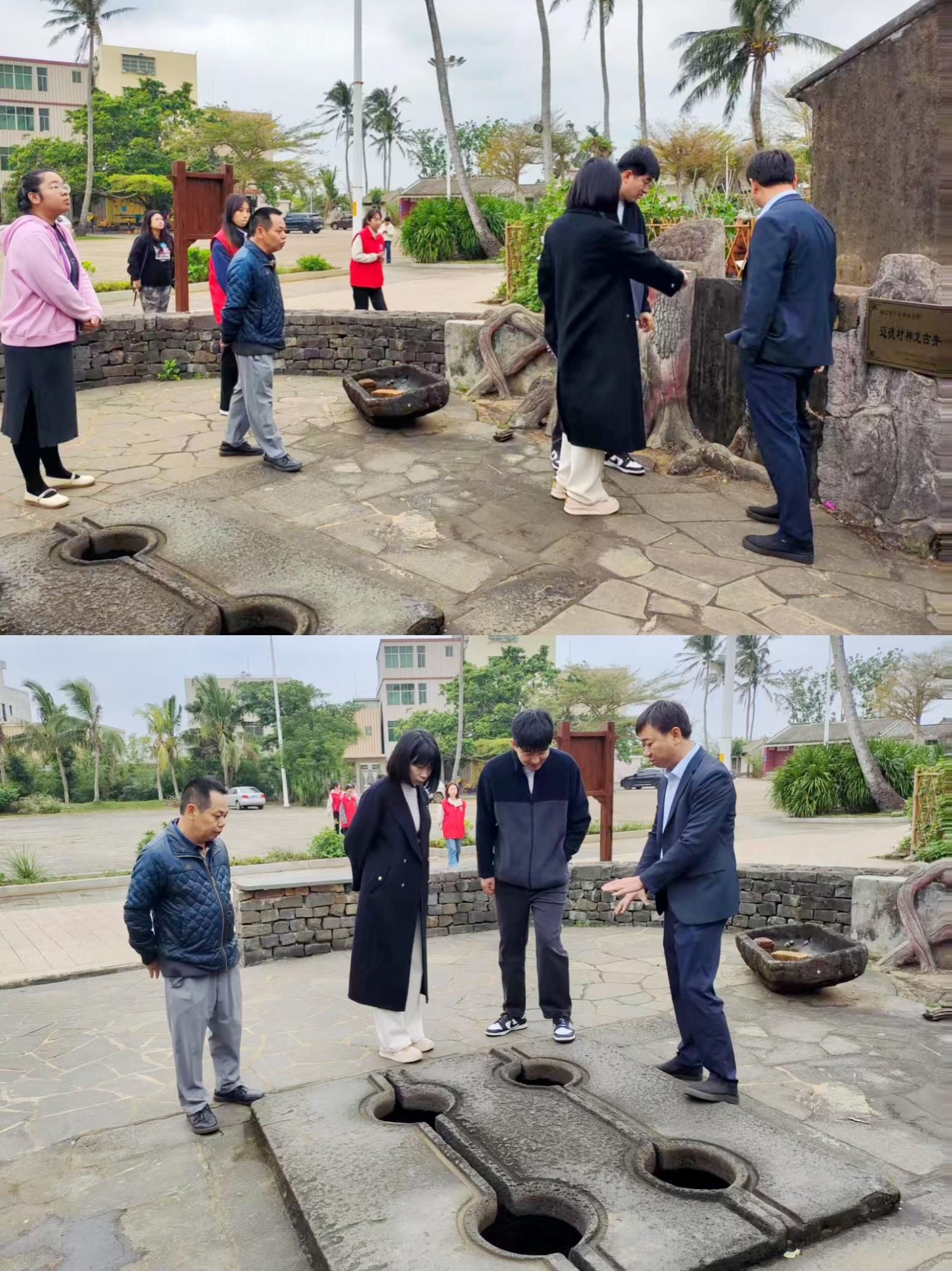 环保活动结束后,在迈进社区党支部书记高伟刚的带领下,学生党支部党员们展开"社区人文行走"活动。在曾氏宗祠中了解历史发展脉络,在百年古井旁聆听汲水文化故事,在状元桥上、荷花池畔感知人文气息……党员们看到了历史与现代的交融,系统了解该社区从传统村落发展为现代化宜居社区的历程。