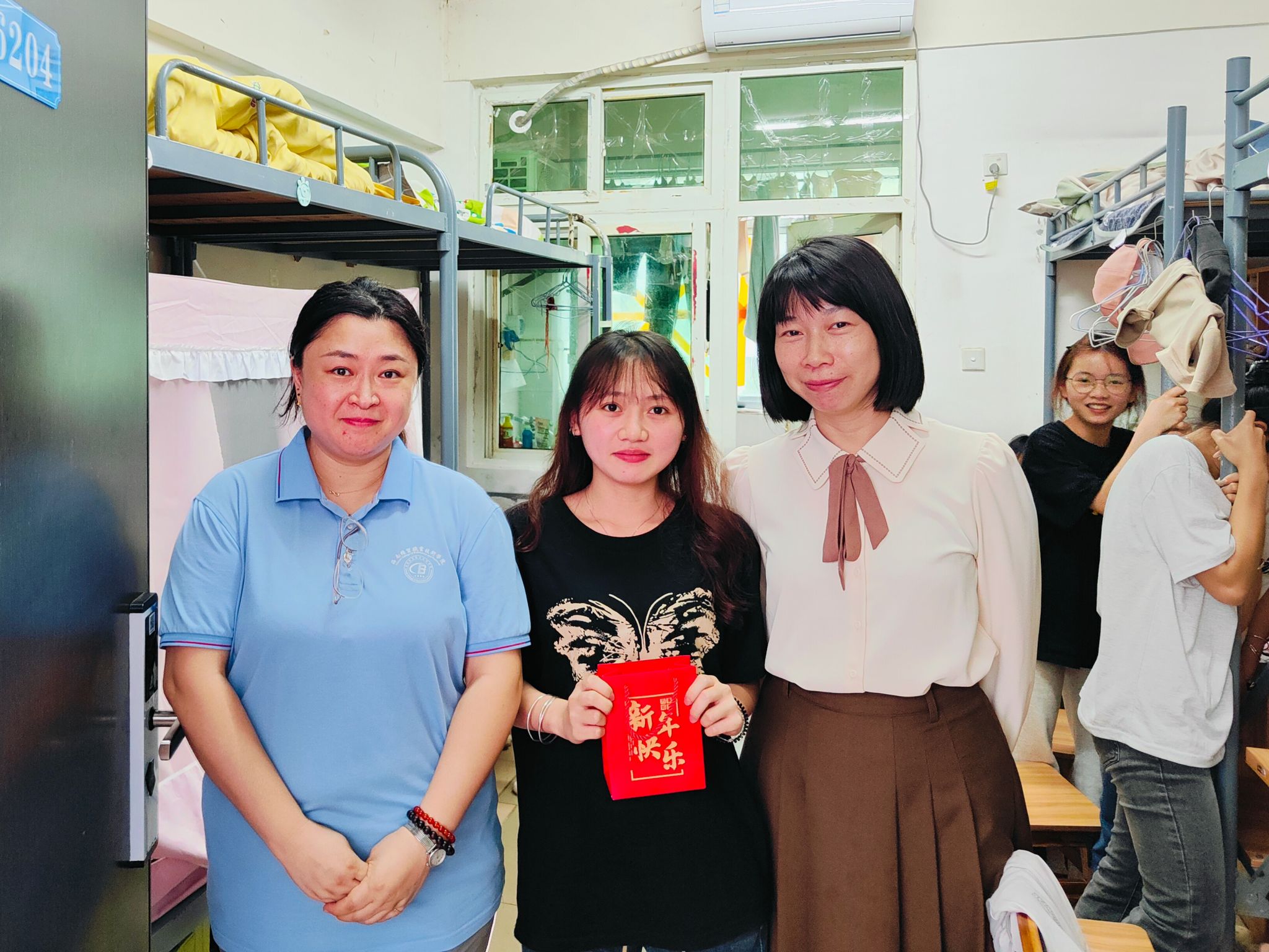 活动由学院党总支副书记带队,全体辅导员共同参与,通过深入学生宿舍开展文明礼仪实践教育,着力培育新时代大学生尊师重道、文明有礼的良好风尚。在走访过程中,老师们以“主动开门并礼貌问好”为切入点,对每间宿舍第一个开门微笑问好,展现文明礼仪的学生现场赠送小礼物。“文明素养的培育既要注重文化浸润,更要强化行为养成。我们希望通过这样的生活化场景教育,让礼仪规范真正内化为学生的自觉行动。”辅导员老师们说。