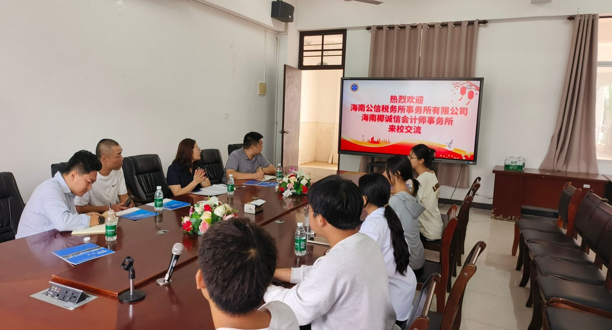 2025年4月28日,椰诚信会计师事务所负责人陈维方来校回访,双方就人才培养、实践育人等话题展开座谈。校企互访是财务管理学院“走出去+引进来”相结合深度访企拓岗的重要实践,双方表示要加强沟通、积极整合资源,开展务实双赢合作。