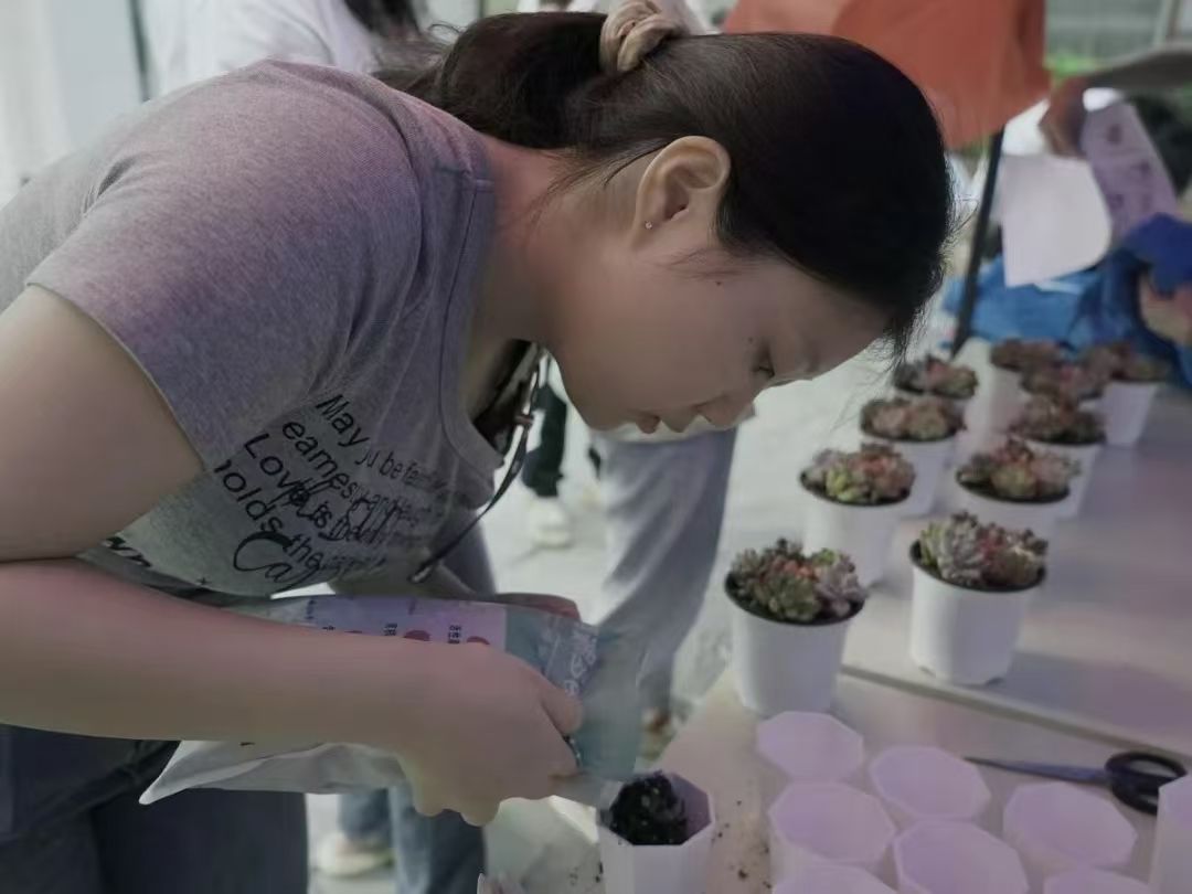 活动期间,学院充分利用新媒体平台宣传,组织广大学生通过领养多肉盆栽的形式,每日打卡记录它们的生长点滴,体验劳动的乐趣与成就感。许多宿舍成员选择共同领养一盆绿植,共同照料与记录,不仅增强了宿舍成员之间的沟通与协作,还让他们在实践中体会到了团队的力量与温暖。
