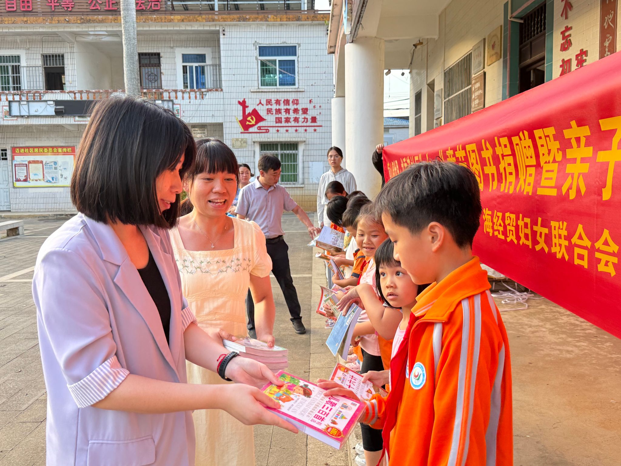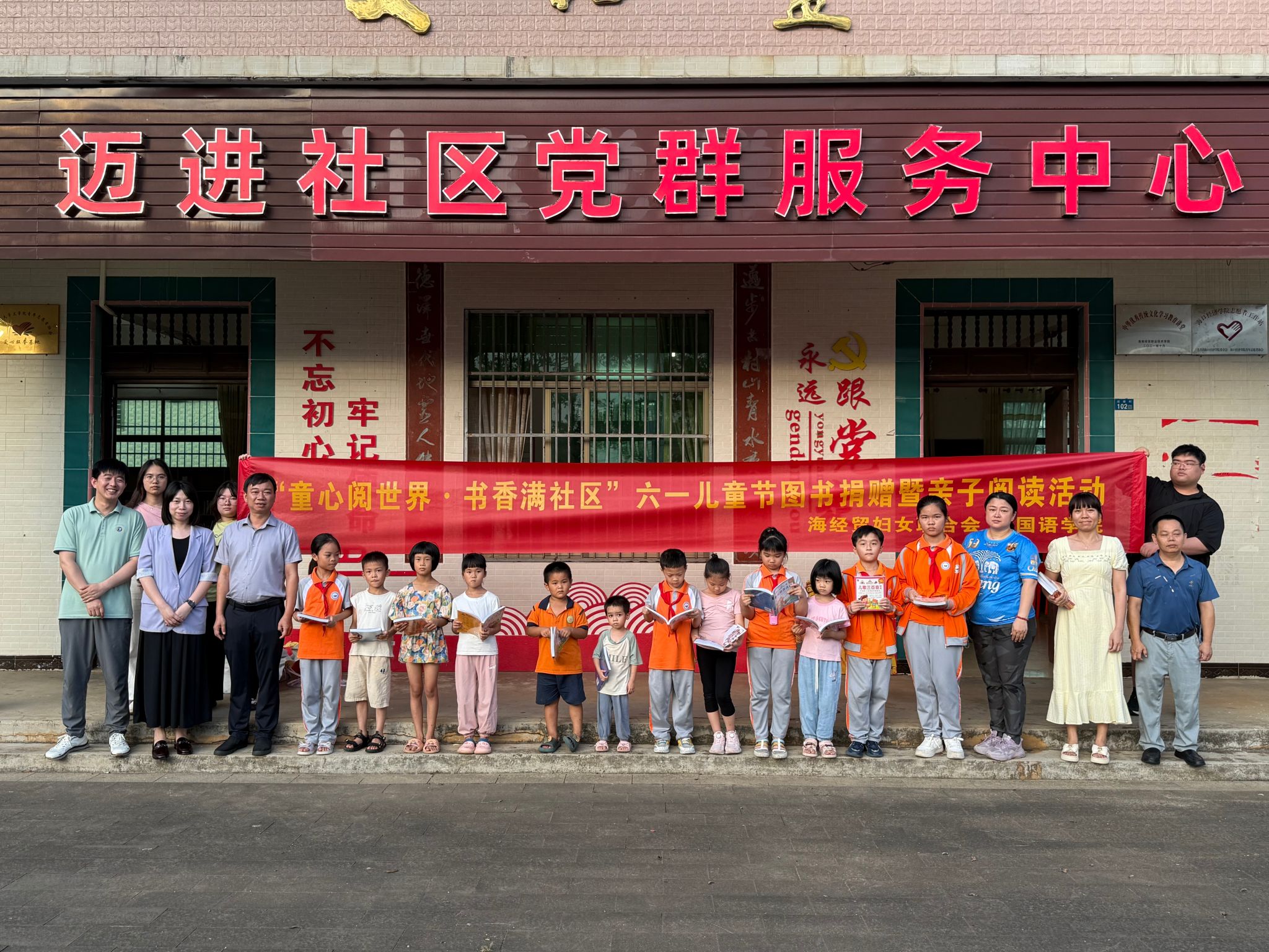 海经贸向迈进社区捐赠儿童图书。书籍涵盖经典童话故事、中国历史百科、常见知识科普等类别。外国语学院学生党员志愿者声情并茂地带领孩子们阅读书籍,分享童话故事,给孩子们送去一份有意义的六一儿童节礼物,在他们心中播撒“知识之种”。孩子们阅读书籍,脸上绽放出幸福的笑容。