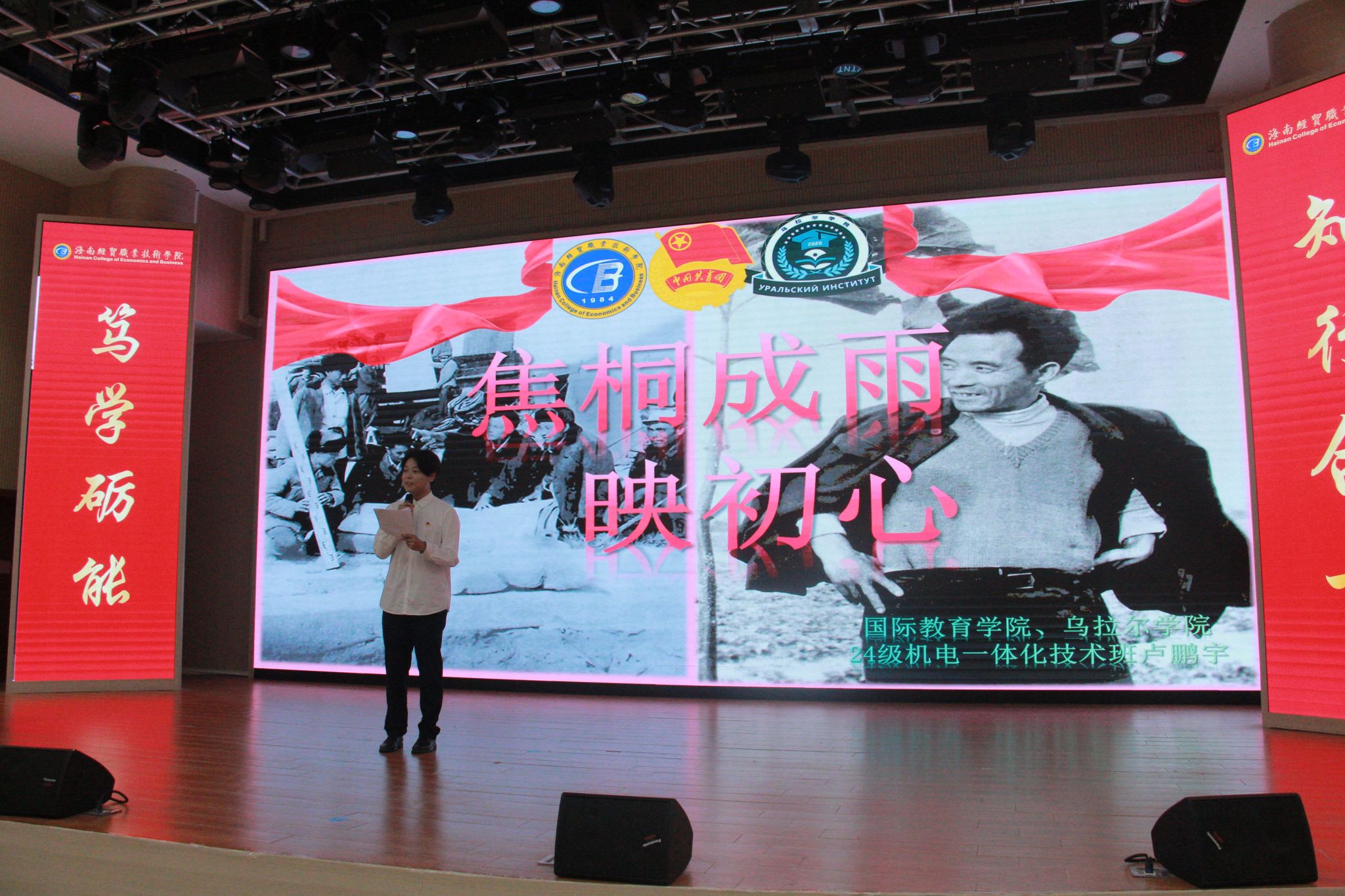 2025年6月17日,为热烈庆祝中国共产党成立104年,乌拉尔学院举办“图说红色精神·传承青春力量”红色故事青年说比赛。经评委综合评定,吴雨桐同学荣获一等奖,王沛泽、栗志凯同学荣获二等奖,曾和煦、卢鹏宇、冯雅茹和王语琦同学荣获三等奖。