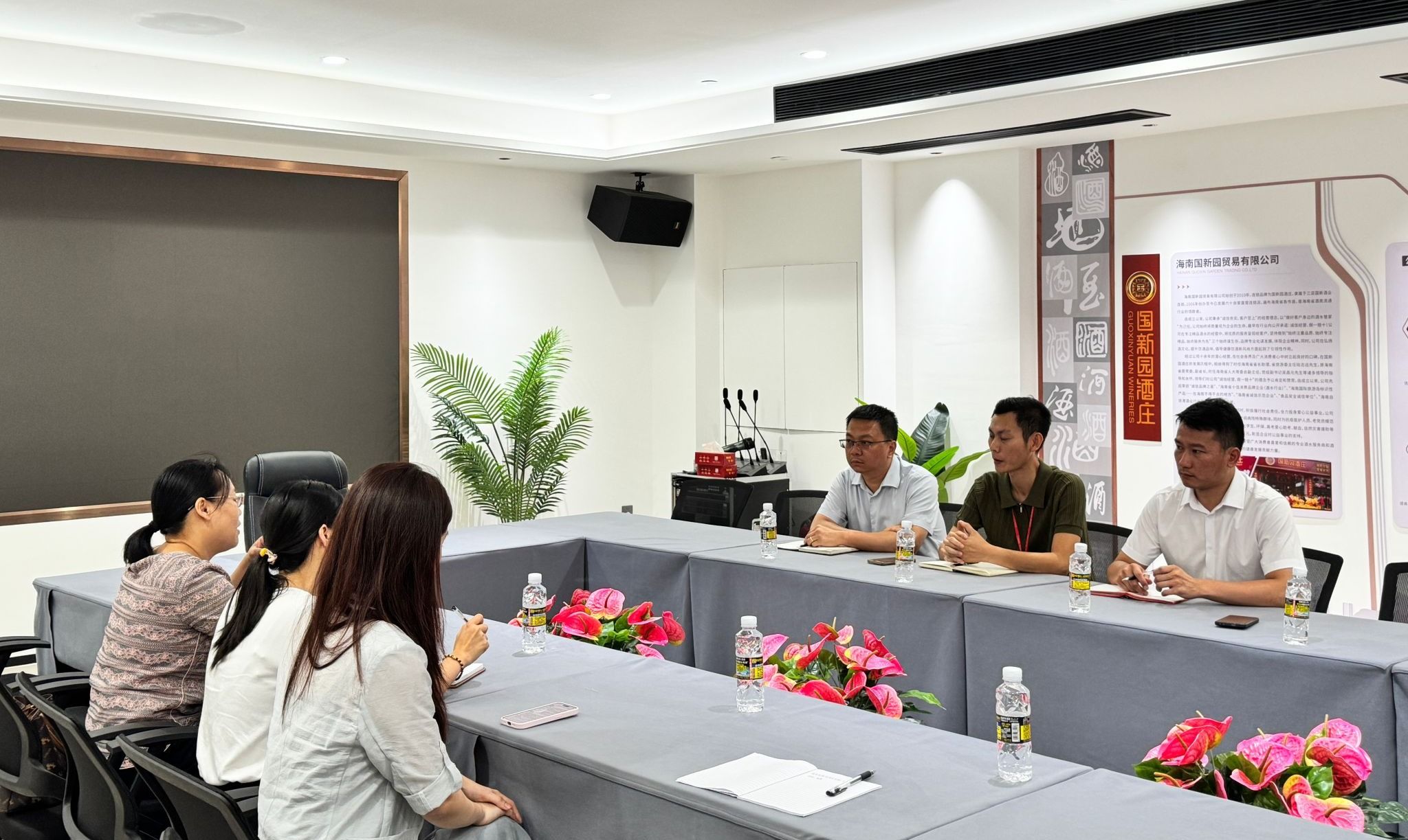 海南国新园贸易有限公司人力资源相关负责人表示,公司正处于快速发展阶段,对市场营销、文化推广、门店管理等岗位人才需求旺盛。企业提供的“店员—副店长—店长—区域经理—区域总监”晋升路径清晰,考核机制完善,为毕业生提供了广阔的成长空间,并分享了企业“文化赋能”与“健康风尚”的创新理念,介绍了酒文化体验馆、跨界融合等特色经营模式。国际贸易学院教师表示,这些实践案例可作为课堂教学的鲜活素材,希望企业专家进校宣讲,帮助学生了解连锁品牌新零售趋势。校企双方就学生实习岗位、职业培训及就业招聘等达成初步合作意向。