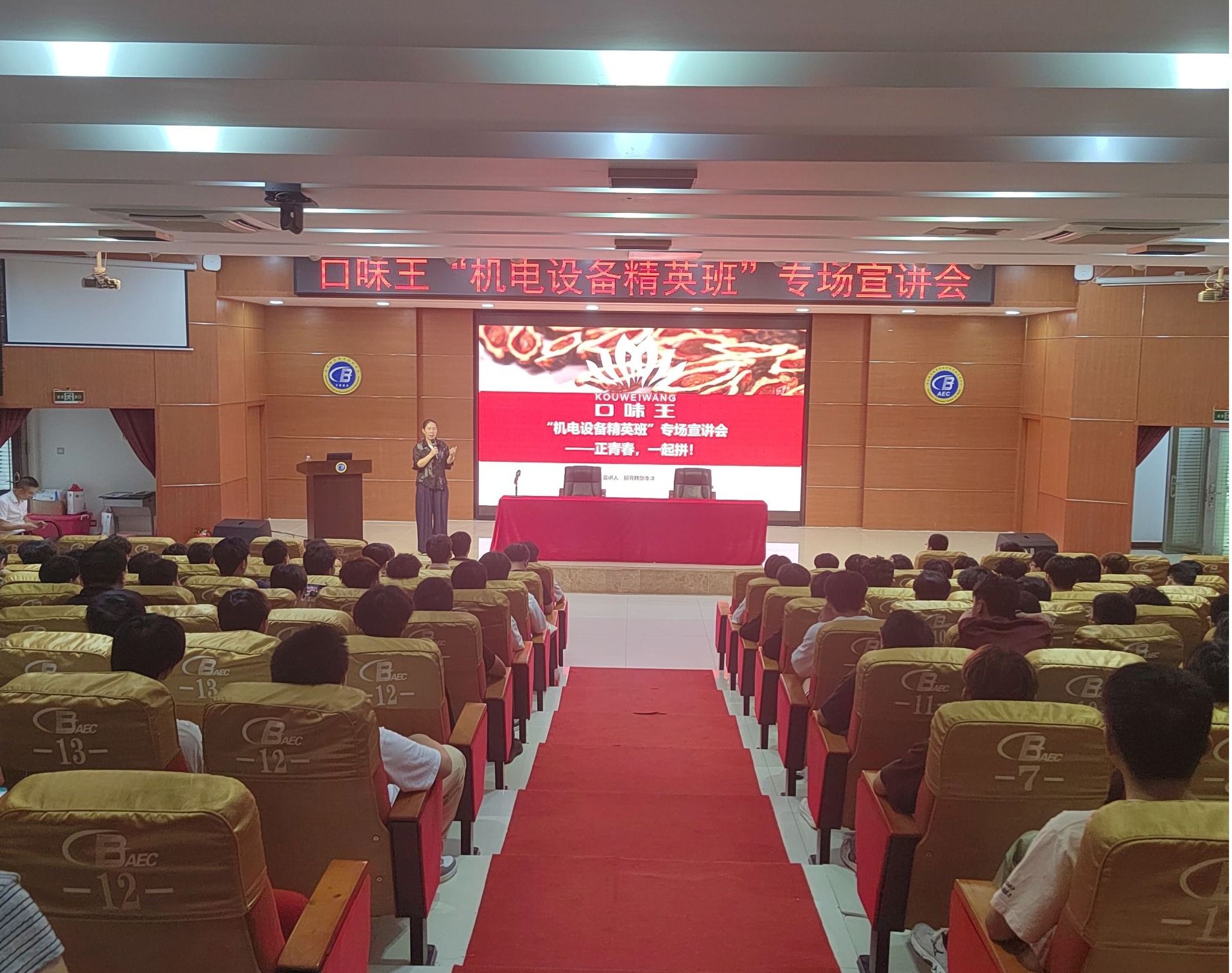 2025年9月26日,机电与汽车工程学院举办口味王“机电设备精英班”专场宣讲会,2024级200余名学生到场参与,现场氛围热烈。