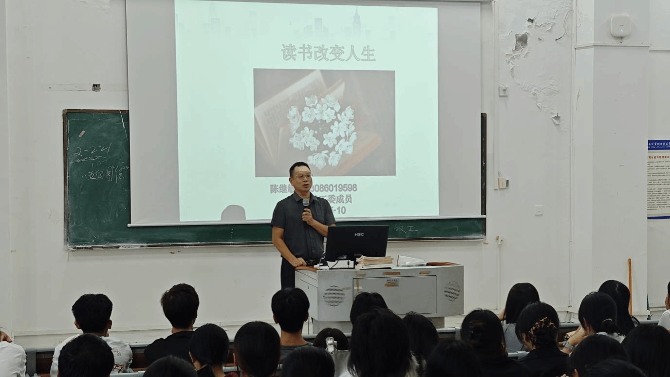 2025年10月21日,人文艺术学院邀请学校关心下一代工作委员会陈继敏老师为120余名新生带来“读书改变人生”专题讲座,引导新生树立正确的读书观念,明确读书意义与方法,尽快适应大学学习生活。