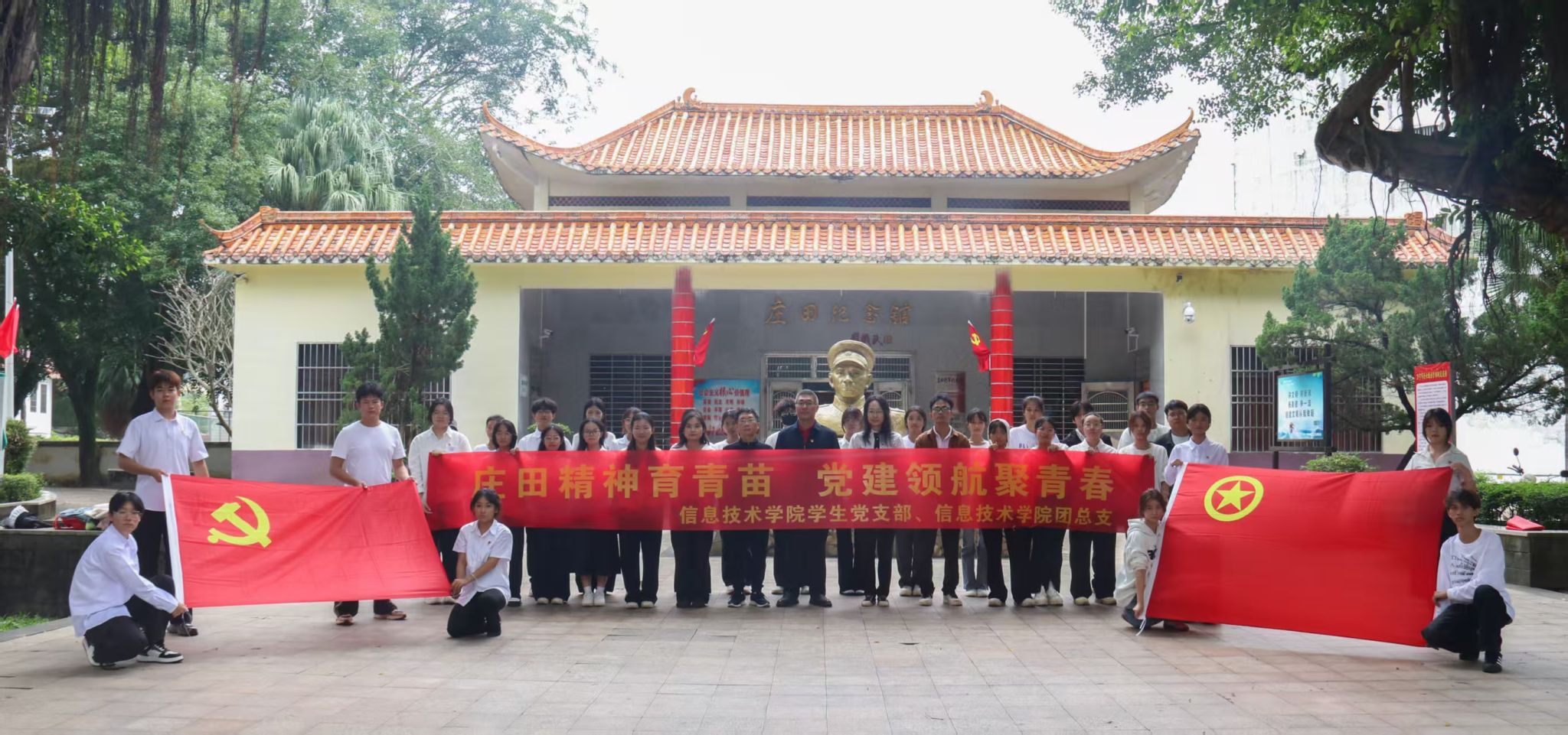 近日,信息技术学院学生党支部联合学院团总支组织开展“庄田精神育青苗,党建领航聚青春”党建引领团建主题活动。学生党员、预备党员及团员代表共同前往万宁市庄田将军纪念馆,在红色教育中筑牢信仰之基,凝聚青春力量。