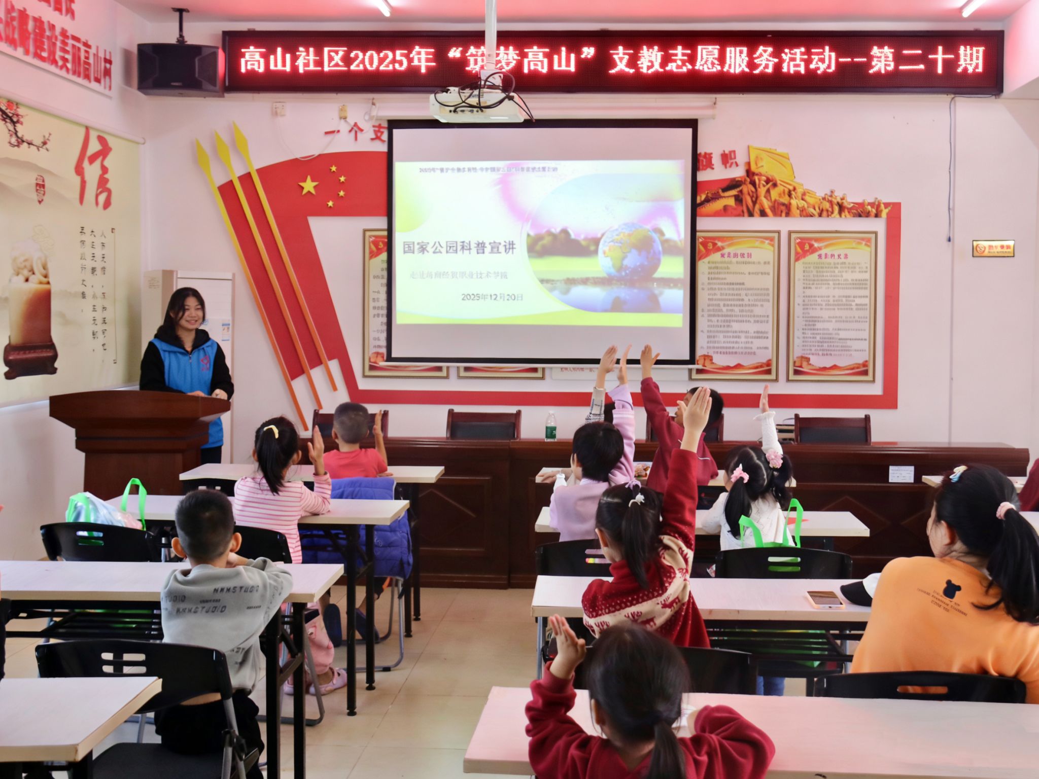 2025年12月20日,由海口桂林洋经济开发区高山社区居委会工会主办、beat365英国官网网站信息技术学院未成年人科普志愿宣讲团协办的热带雨林科普宣讲活动在高山社区顺利开展。本次活动为小朋友们普及生态知识、持续提升社区居民尤其是青少年的生态保护意识,推动校社联动的科普服务走深走实,让生态知识以生动的方式融入基层生活。