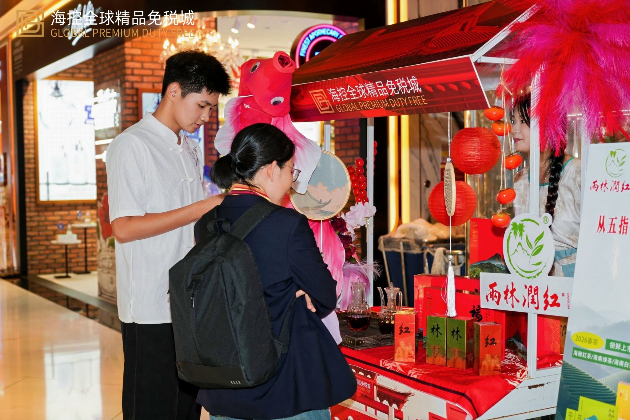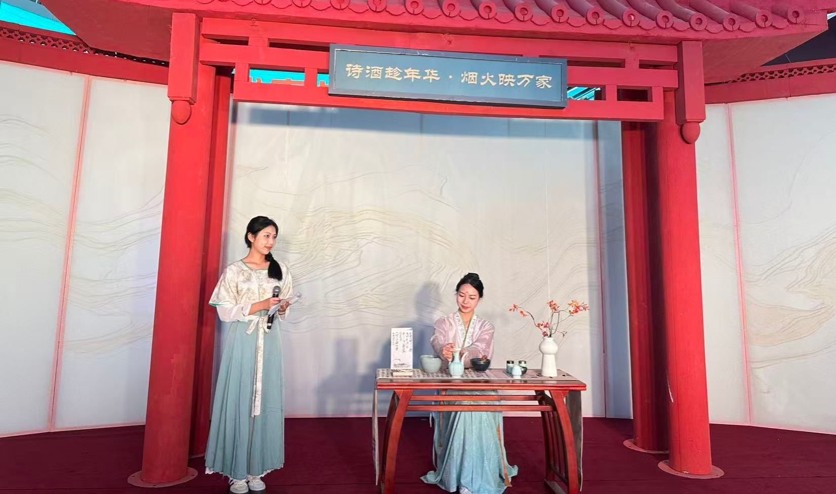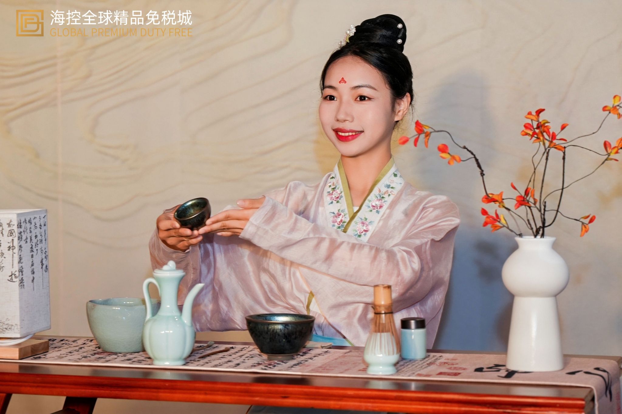 宋韵点茶展风采,校企协同育新人。近日,海口日月广场海控全球精品免税城“诗酒趁年华 烟火映万家”东坡主题活动顺利举办。beat365英国官网网站国际旅游学院茶艺老师林文超带领肖佳、黄少雨、祝雅兰、吴钟圣四名学生,携手校企合作单位华闻雨林润红公司,在活动现场呈现了一场韵味十足的宋代点茶表演。