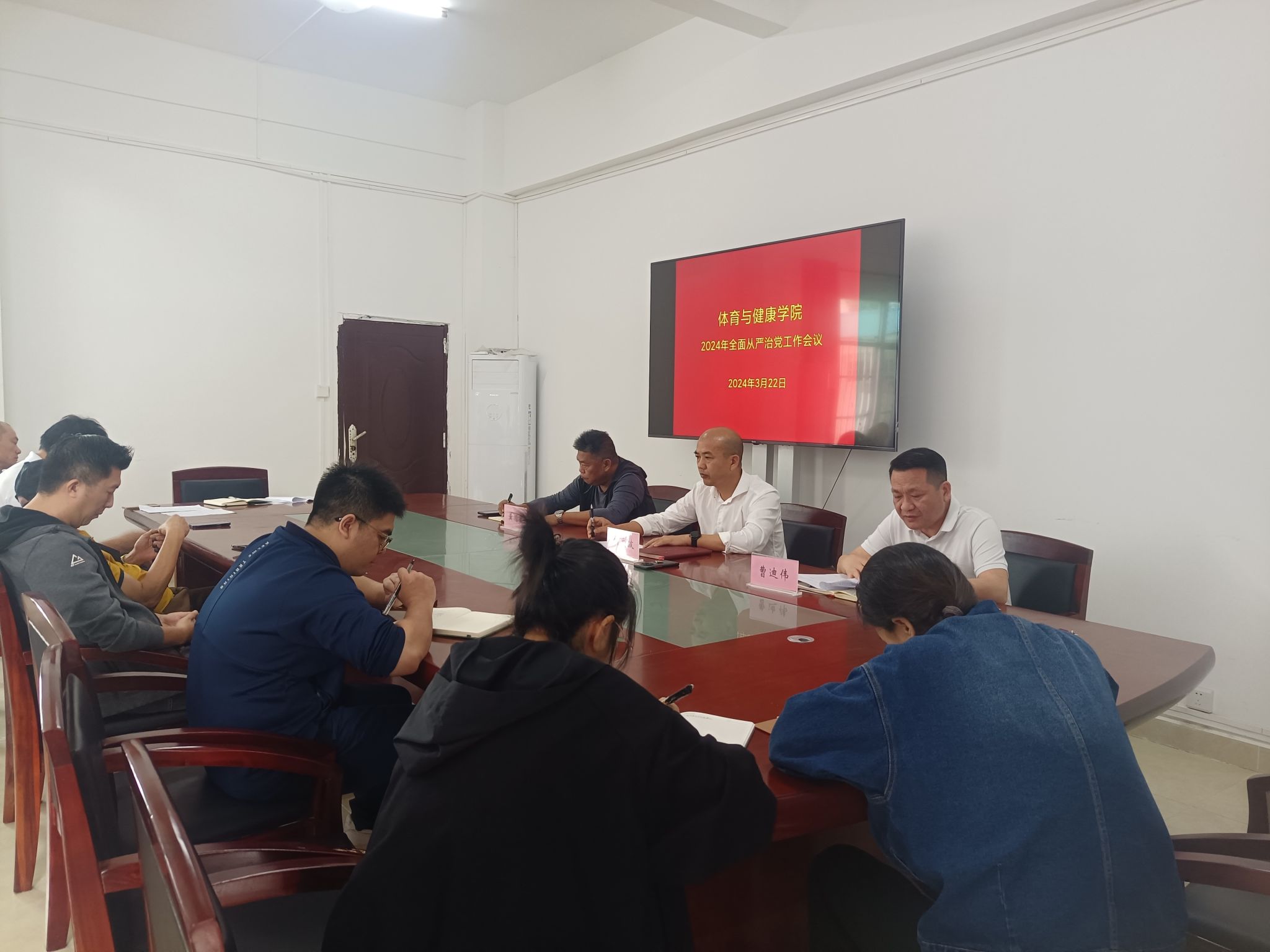 2024年3月22日,体育与健康学院召开2024年全面从严治党工作会议,传达学习二十届中央纪委三次全会、省纪委八届三次全会精神,总结2023年有关工作,并部署2024年学院全面从严治党工作。