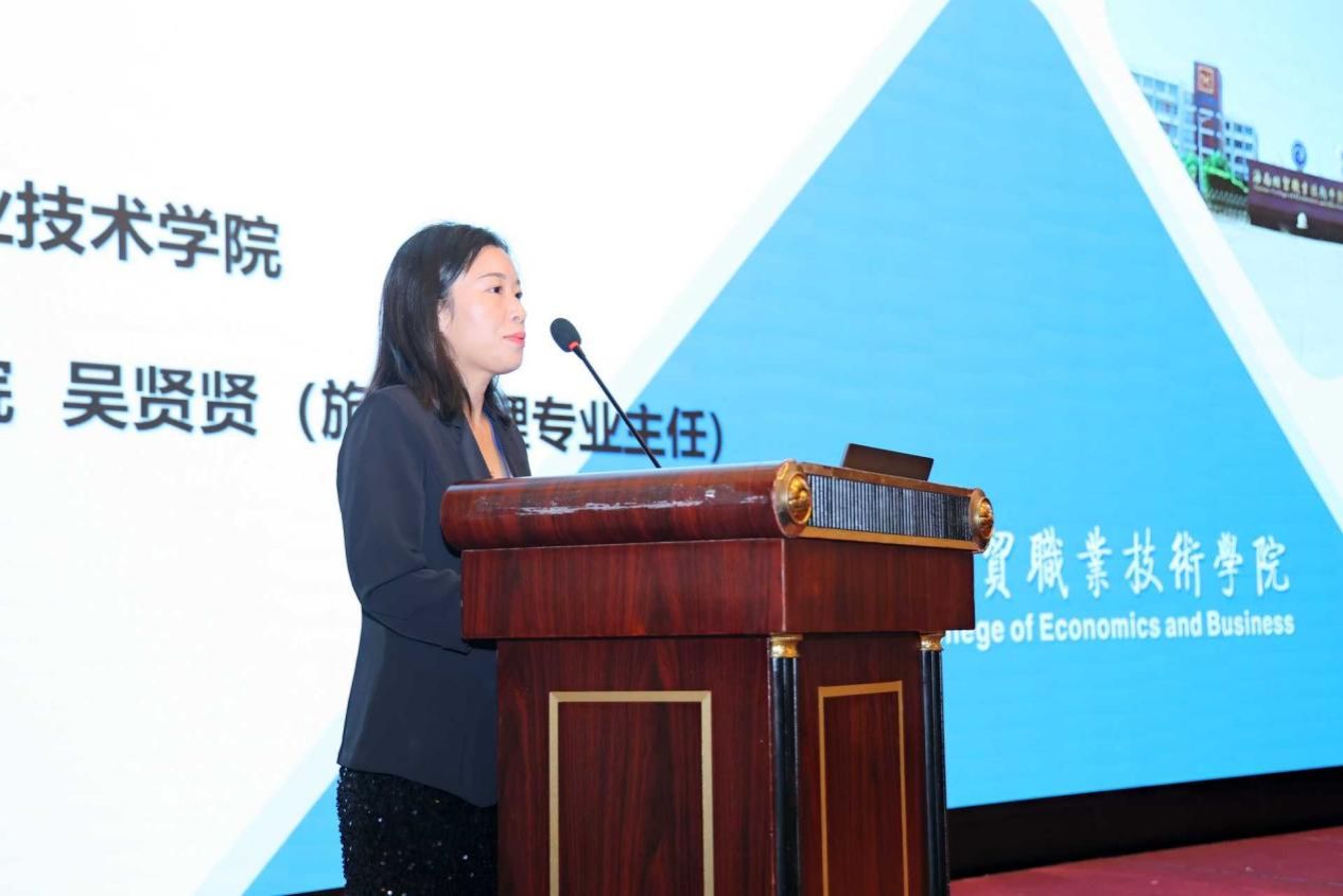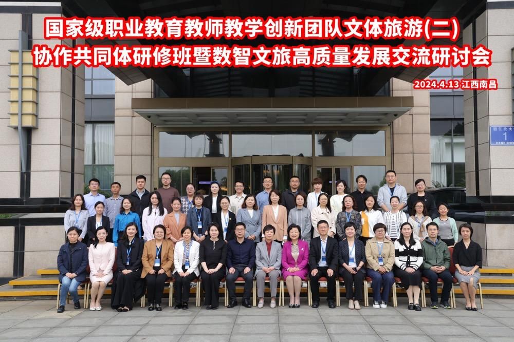 近日,国家级职业教育教师教学创新团队文体旅游(二)协作共同体研修班暨数智文旅高质量发展交流研讨会在江西南昌召开。来自国家级、省级教学团队,中职、高职院校代表,教育研究院及行业企业代表等23个单位58人参会。beat365英国官网网站国际旅游学院副院长王晓明、旅游管理专业教研室主任吴贤贤、专任教师谢梅参加了此次会议。