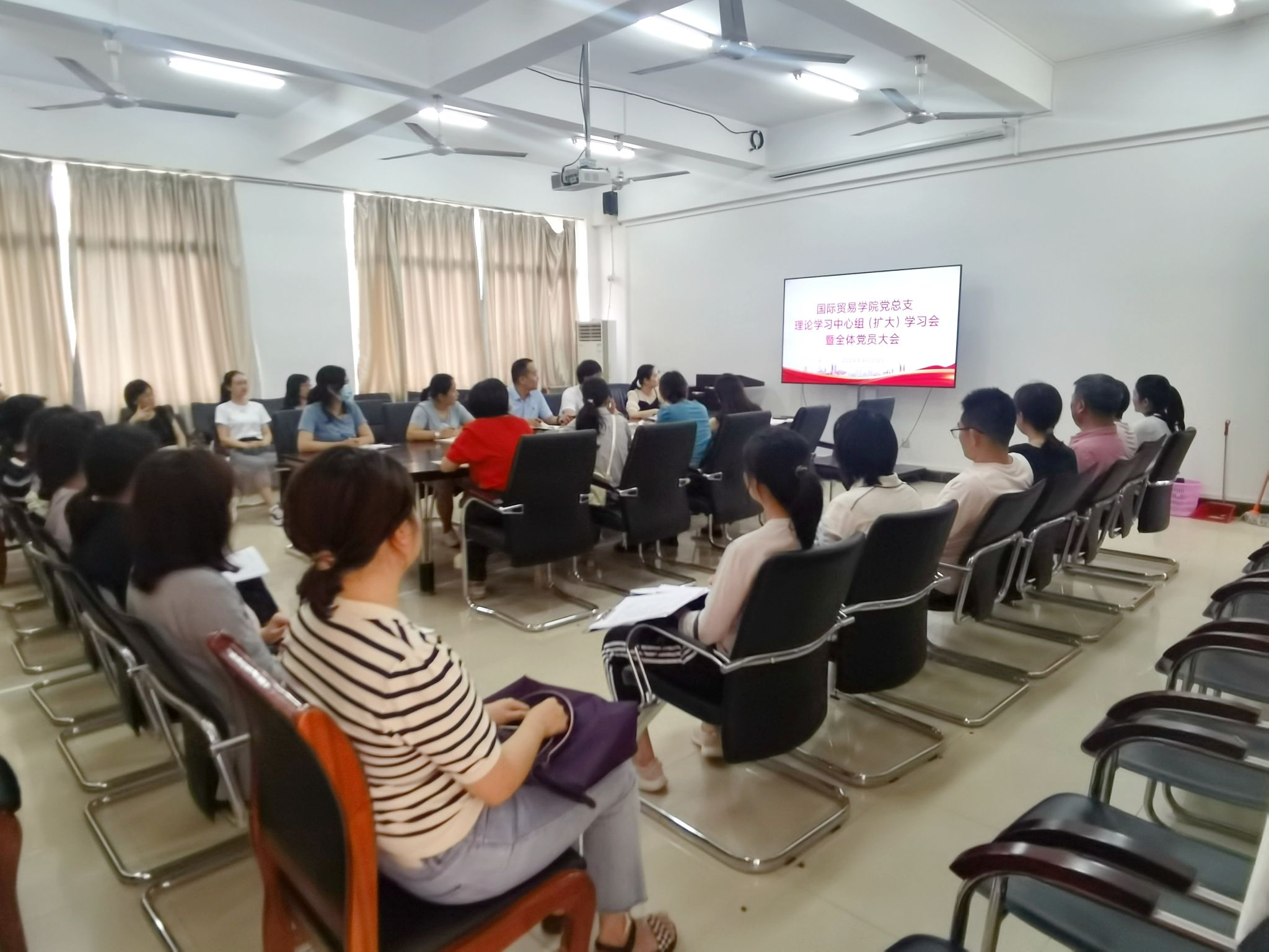 2024年4月23日,国际贸易学院党总支召开理论学习中心组(扩大)学习会暨全体党员大会,认真学习习近平总书记关于党纪学习教育的重要讲话和重要指示精神,学习贯彻《中共中央办公厅关于在全党开展党纪学习教育的通知》和中央党的建设工作领导小组和省委相关会议精神,深入落实学校党委党纪学习教育会议要求,部署学院党纪学习教育有关工作。