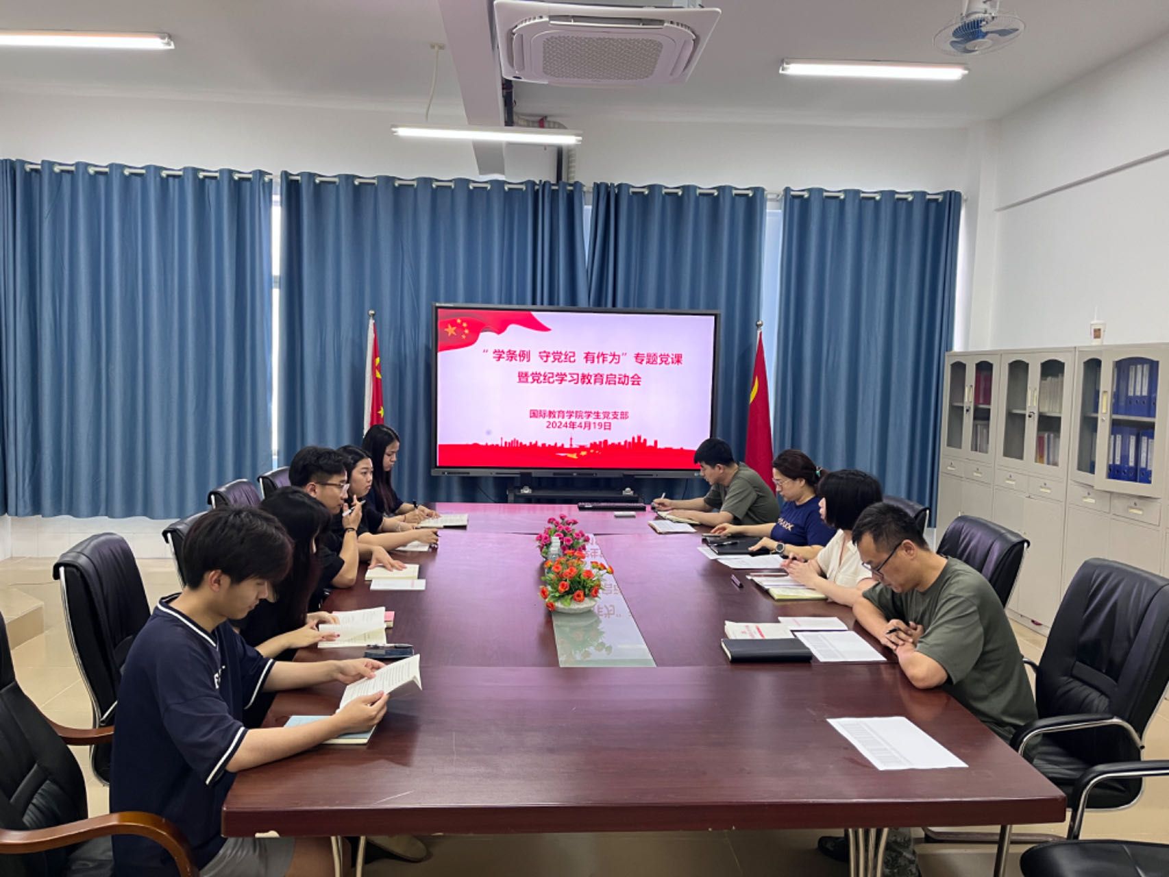国际教育学院学生党支部和教工党支部也分别制定党纪学习教育计划清单,于4月19日和4月23日分别组织了第一次集中学习,要求全体党员强化理论学习,做到心中有党纪、言行有规矩,知敬畏、守底线,将党纪学习融入到日常工作生活中,推动党纪学习教育取得实实在在的成效。