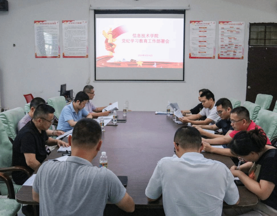 2024年4月22日,信息技术学院党总支召开理论中心组学习会,专题学习《中国共产党纪律处分条例》。党总支全体委员参加。