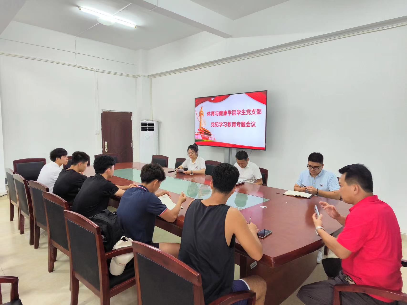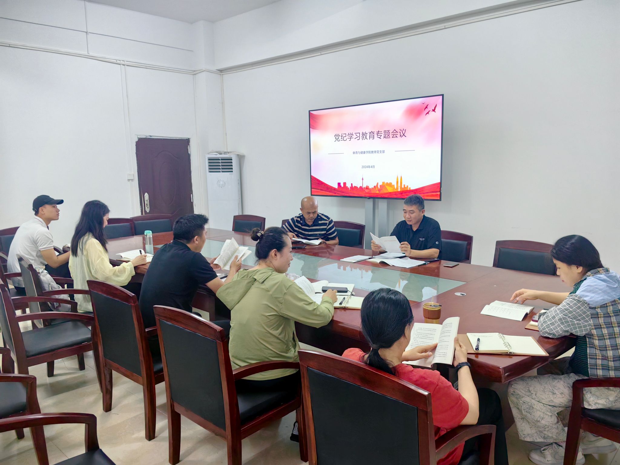 2024年4月23日,体育与健康学院党总支举行党纪学习教育读书班暨理论学习中心组学习会,进行党纪学习教育第一次集中学习。学院班子成员、理论学习中心组成员参加学习。