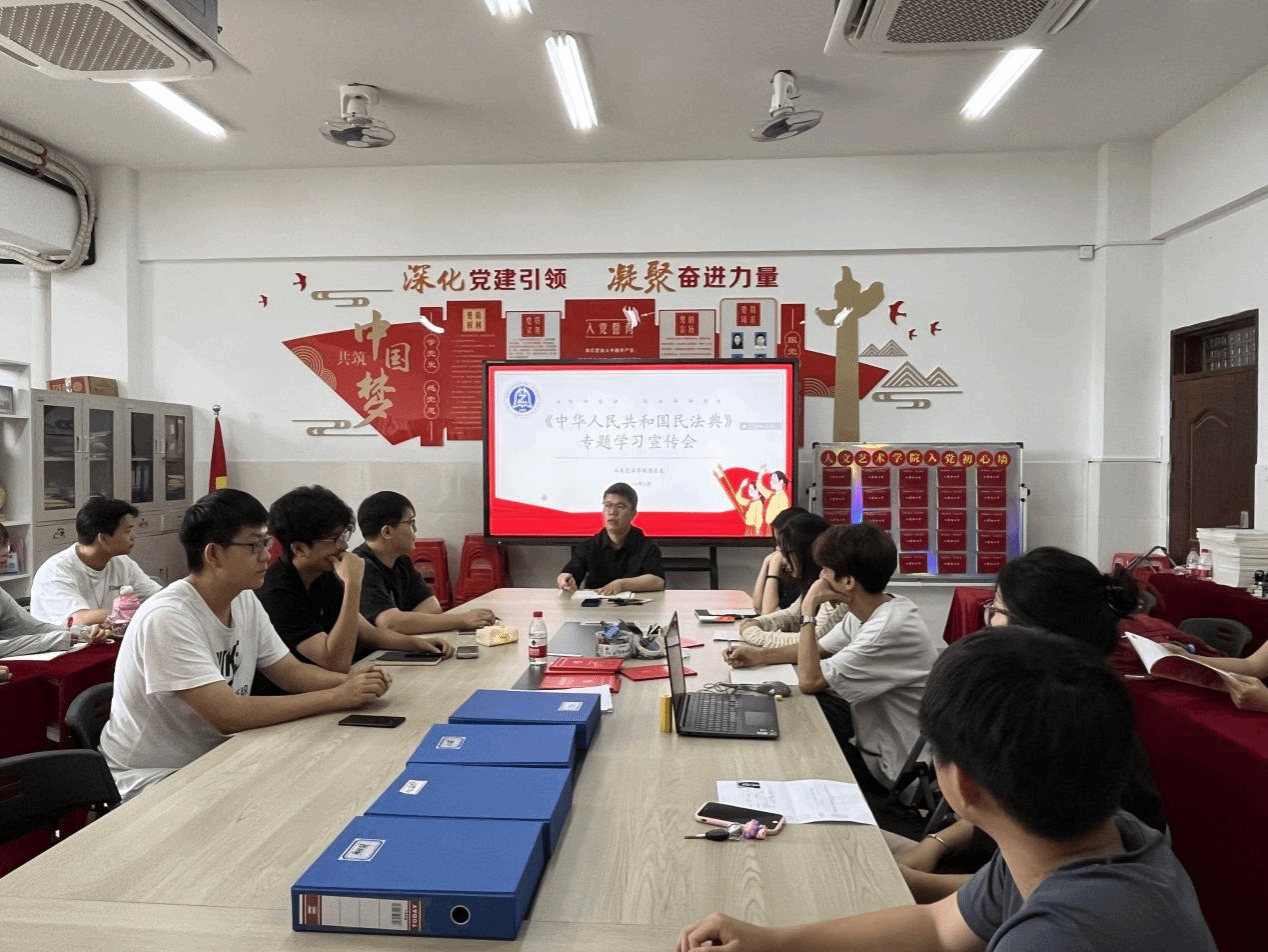 2024年5月15日,在人文艺术学院党总支的指导下,人文艺术学院团总支开展《中华人民共和国民法典》专题学习会。