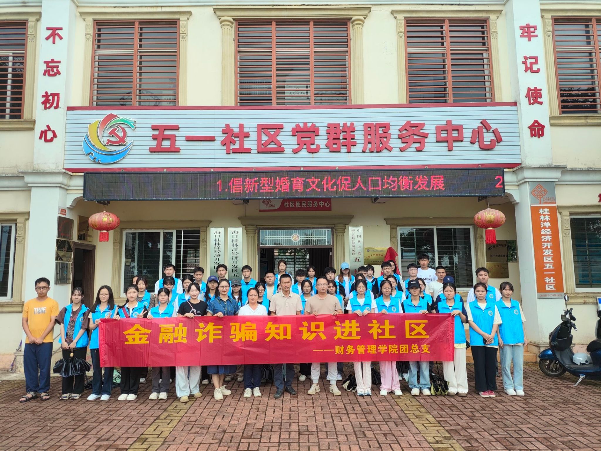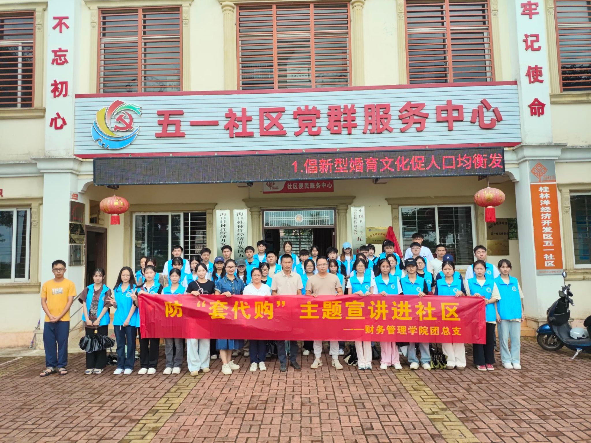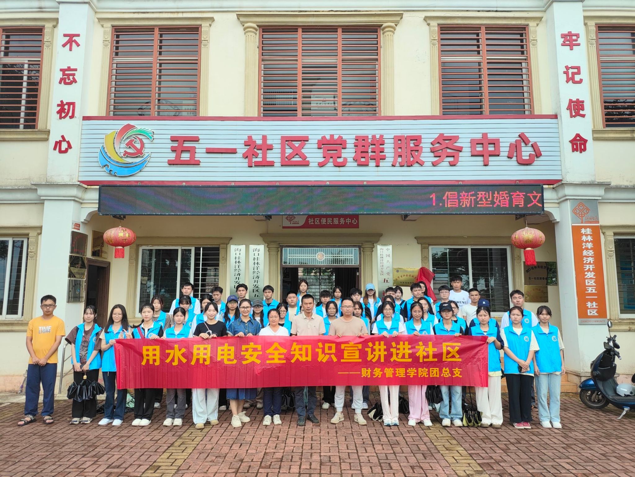 2024年5月28日,财务管理学院师生志愿者前往海口市桂林洋五一社区,开展“脊梁志愿行,奉献勇担当”志愿活动,并挂牌成立大学生社会实践基地,持续推动志愿服务活动常态化制度化。