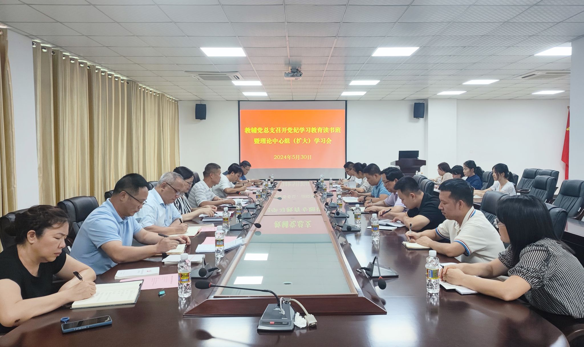 2024年5月30日,教辅党总支召开党纪学习教育读书班暨理论学习中心组(扩大)学习会,beat365英国官网网站党委委员、副院长刘文斌作“学习贯彻《中国共产党纪律处分条例》,做到学纪知纪明纪守纪”专题讲座。