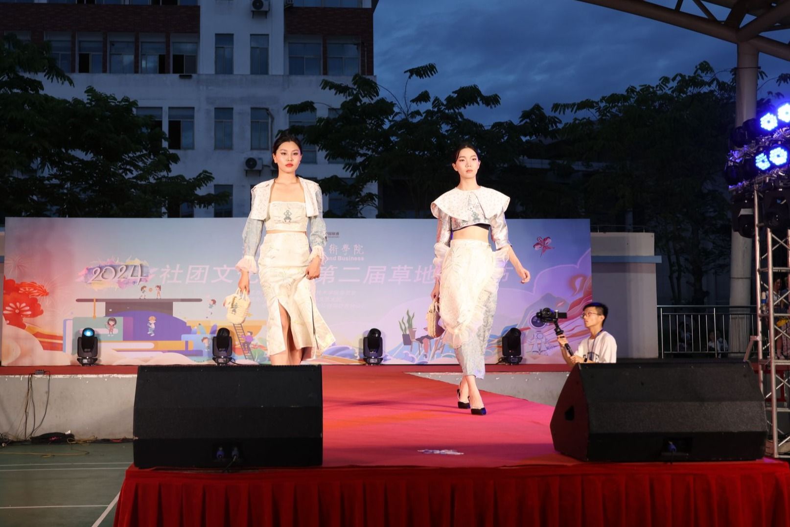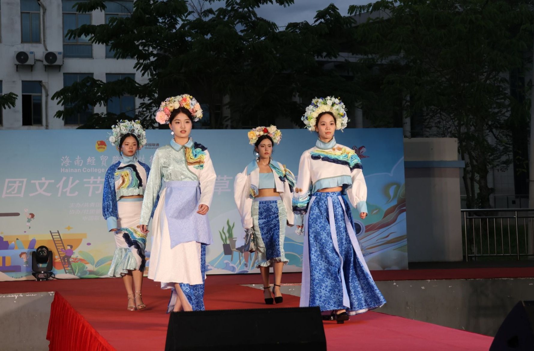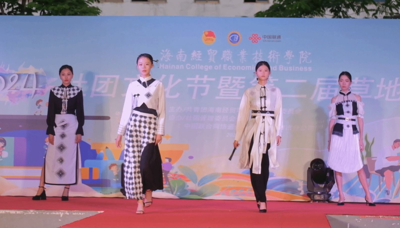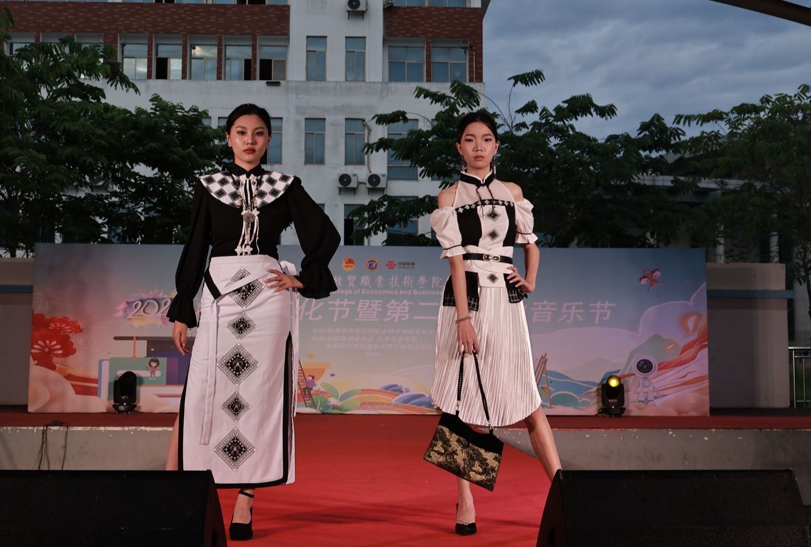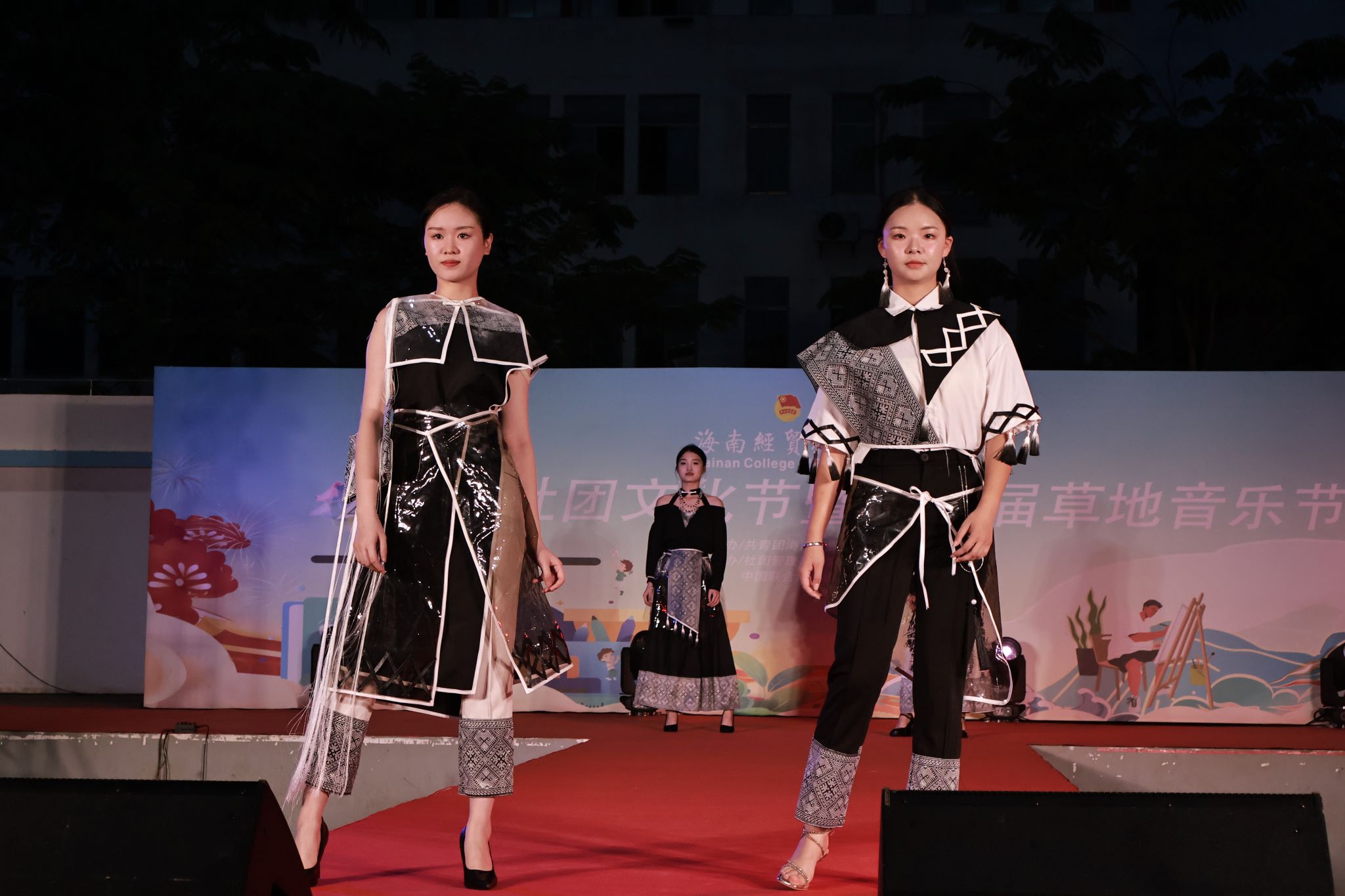 2024年5月28日,星光璀璨,海风轻拂。beat365英国官网网站人文艺术学院“绽放民族华彩”2024届服装与服饰设计专业毕业生毕业设计作品动态展演在热烈掌声中拉开帷幕。此次展演作为2024社团文化节暨第二届草地音乐节的重头戏,吸引了校内外的众多师生和观众,呈现了一场民族特色与现代创意完美融合的时尚盛宴。