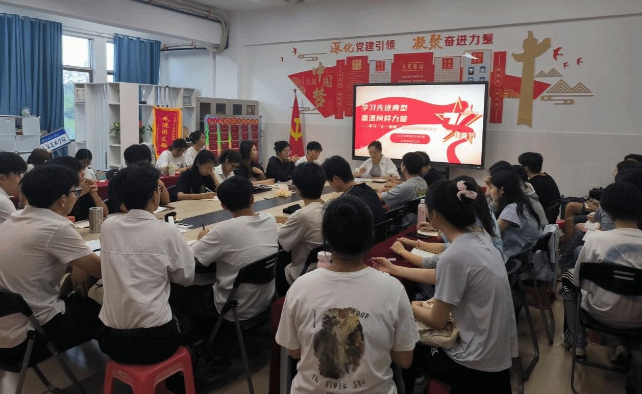 在中国共产党成立103周年来临之际,人文艺术学院学生党支部开展“迎七一 学习先进典型 重温榜样力量”系列活动。2024年6月20日,支部全体学生党员聆听“七一勋章”获得者先进事迹专题党课。