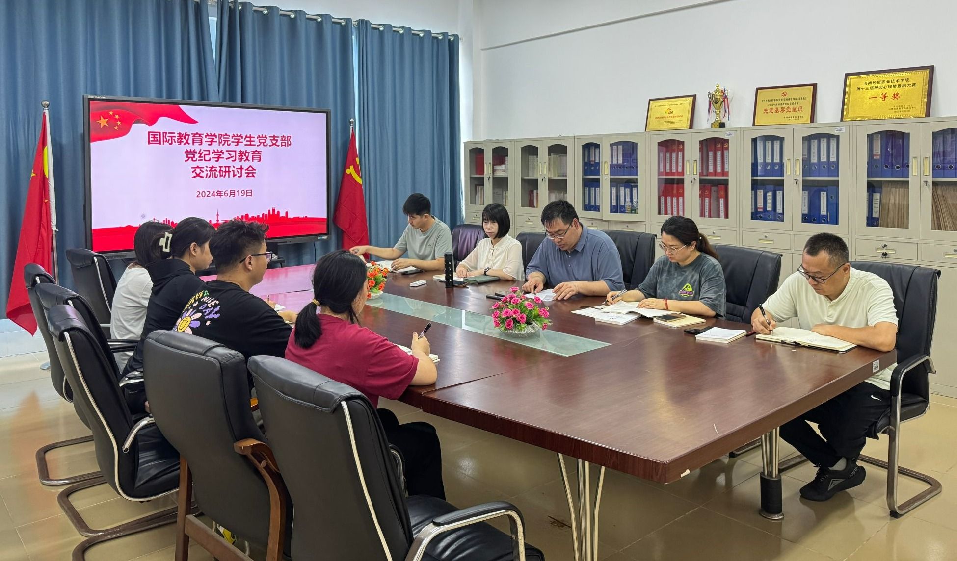 2024年6月19日,国际教育学院学生党支部召开党纪学习教育交流研讨会,深入学习习近平总书记关于全面加强党的纪律建设的重要论述精神。学生党支部全体党员参加会议。